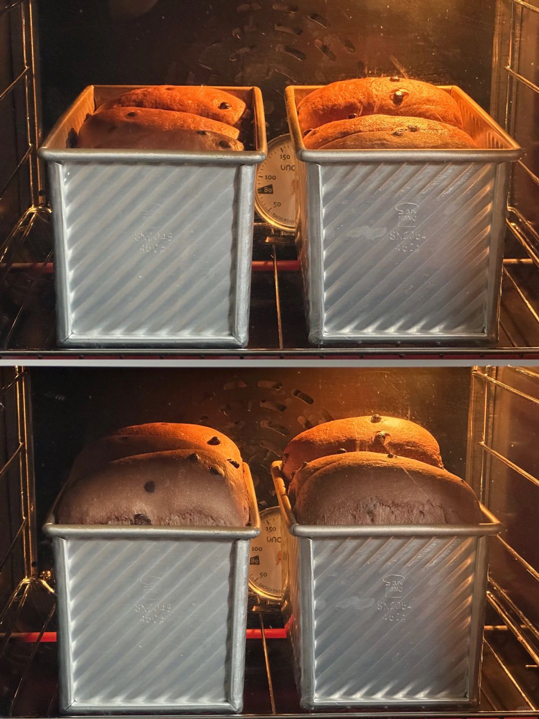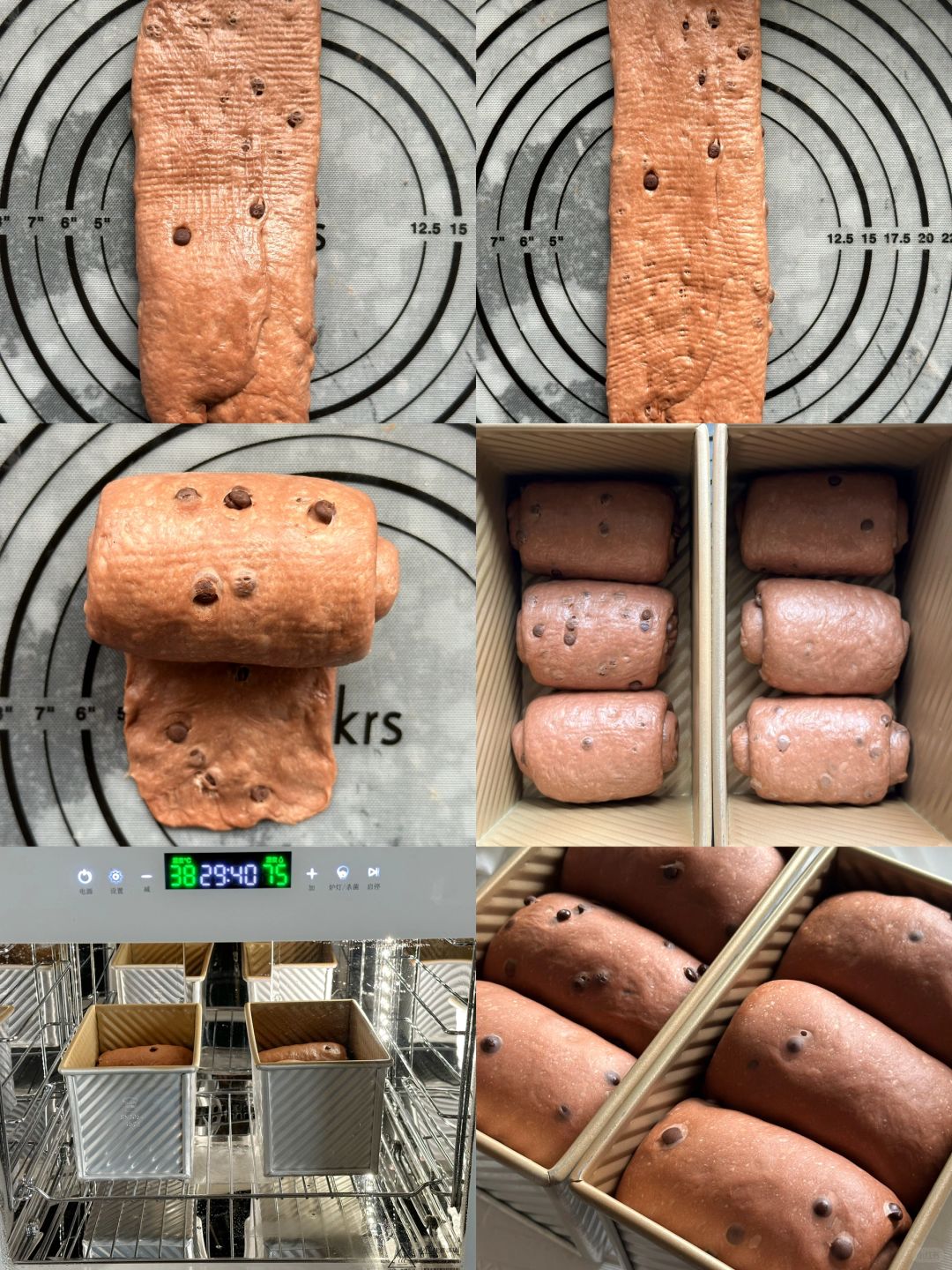 5️⃣依次做好, 放入模具中,发酵箱温度32°C左右,湿度80%的环境下发酵至模具9分满。
