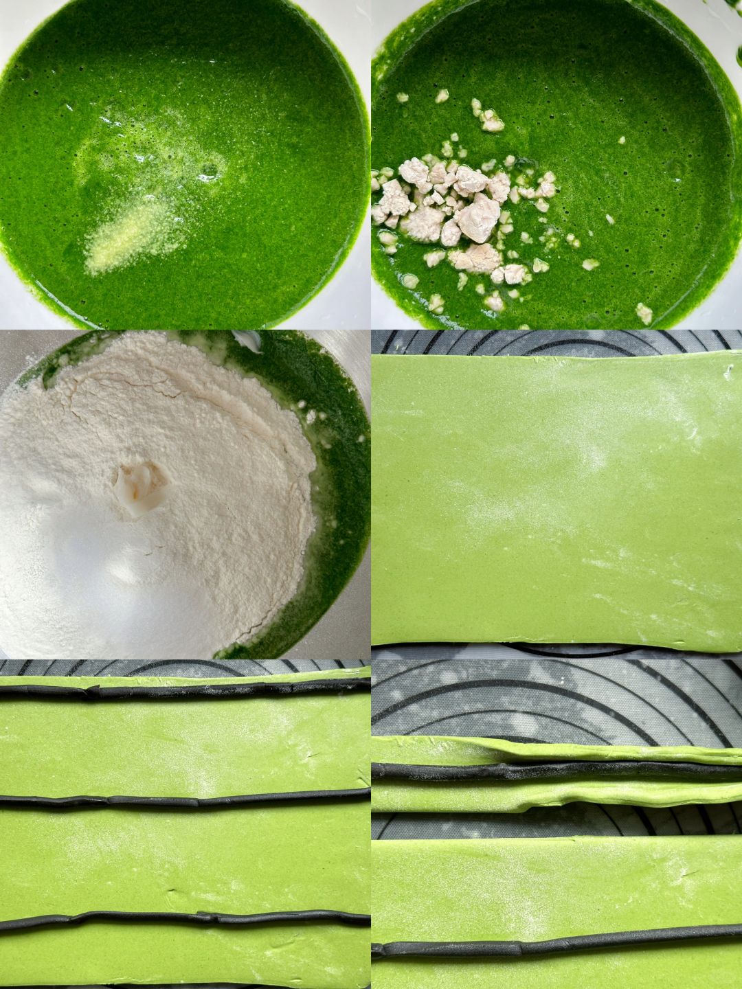 1️⃣ 菠菜叶洗净焯水,加少许水用料理机打成汁,加入少许小苏打固色。