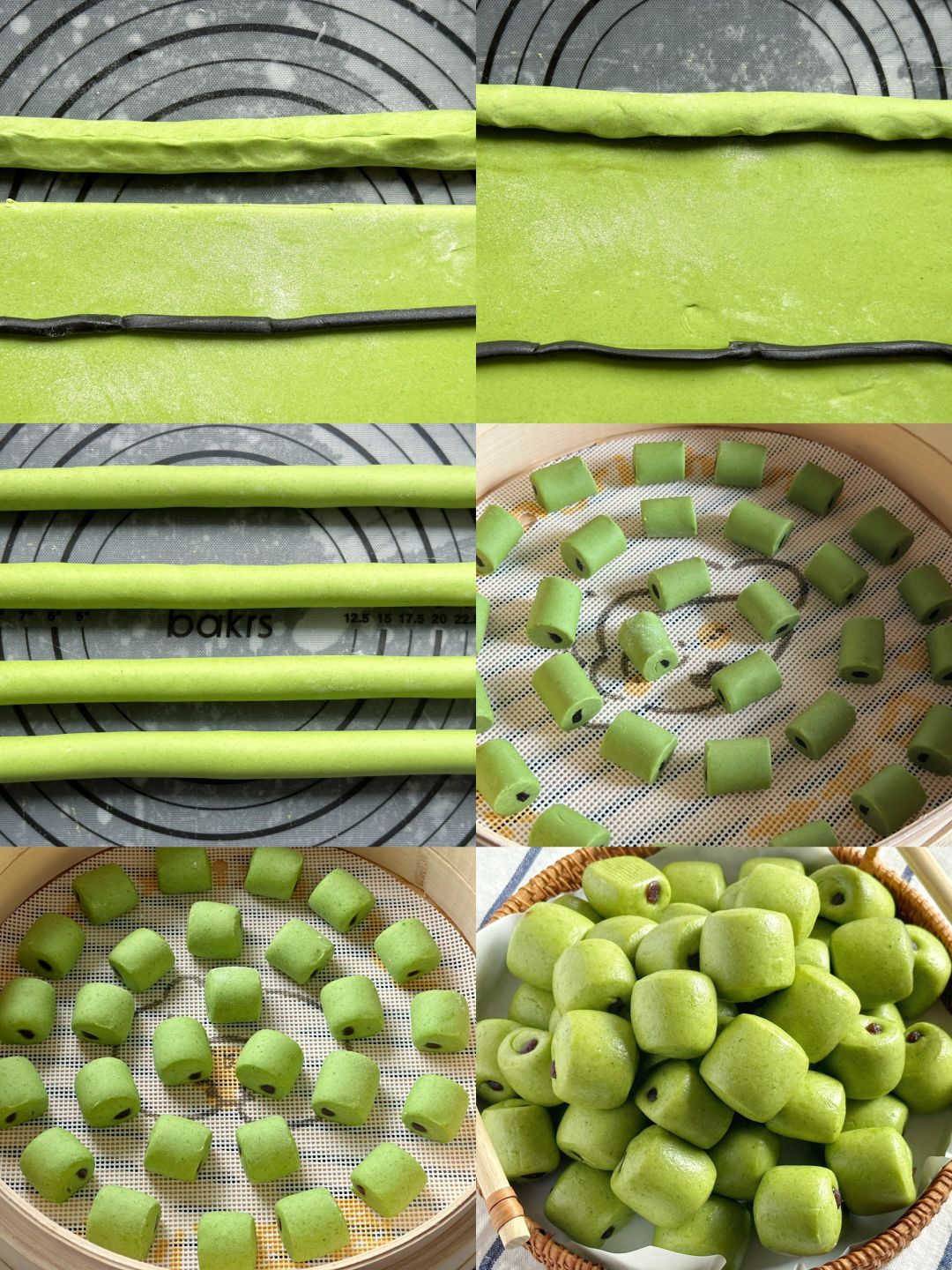 4️⃣ 全部做好,搓成比手指粗一点的长条,切成小段,依次摆好。