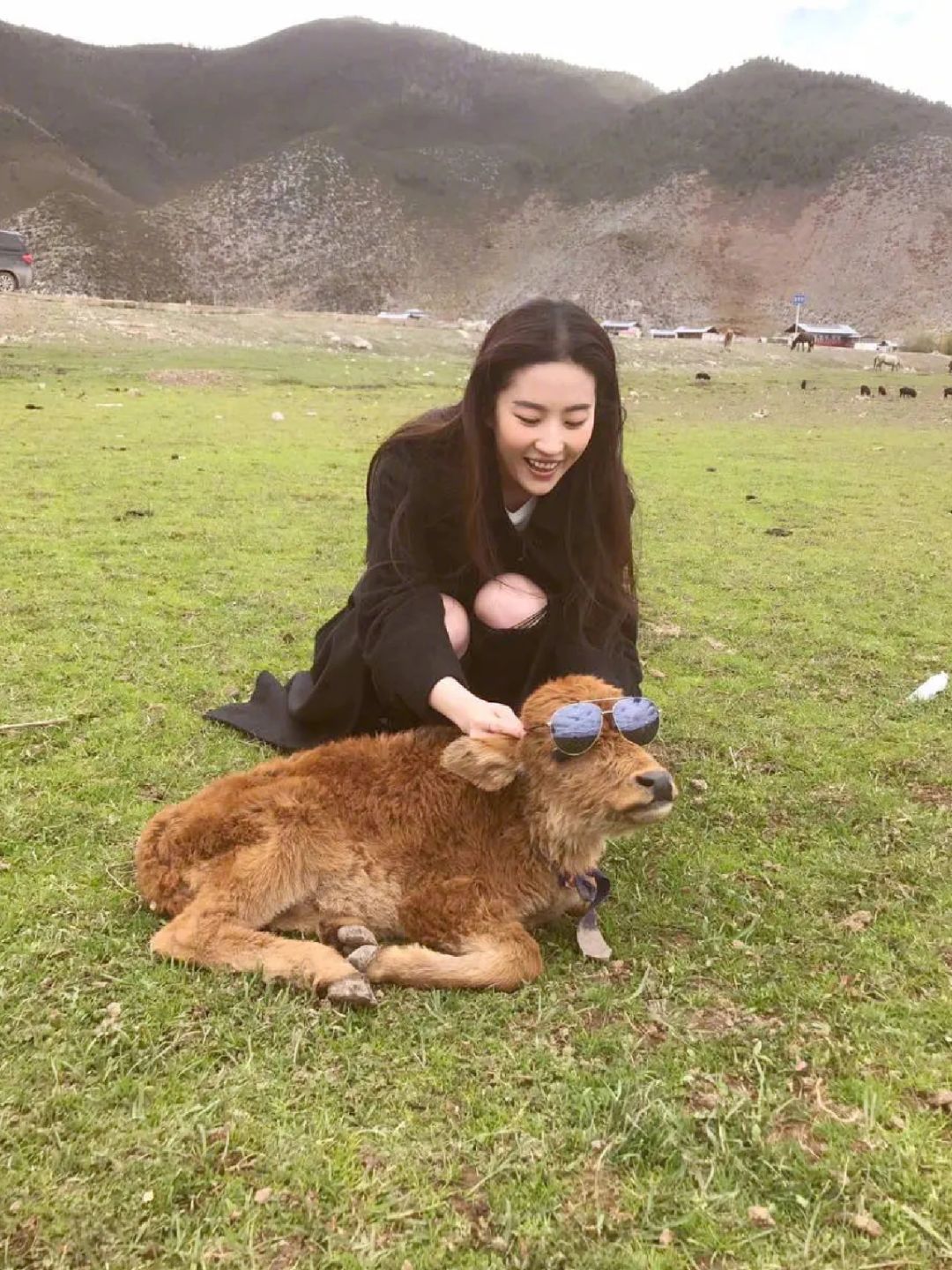翻她微博真的能看到各种形态的旅行照,基本是跟建筑、动物、美食、自然的合影。
