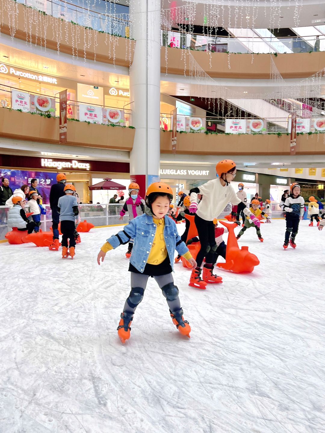 买票后凭🎫领取冰鞋、护具和头盔,竟然还提供一次性脚套和头套,细节满分💯。没有滑冰基础的也不用担心,可租滑冰助手,这样就很稳啦~