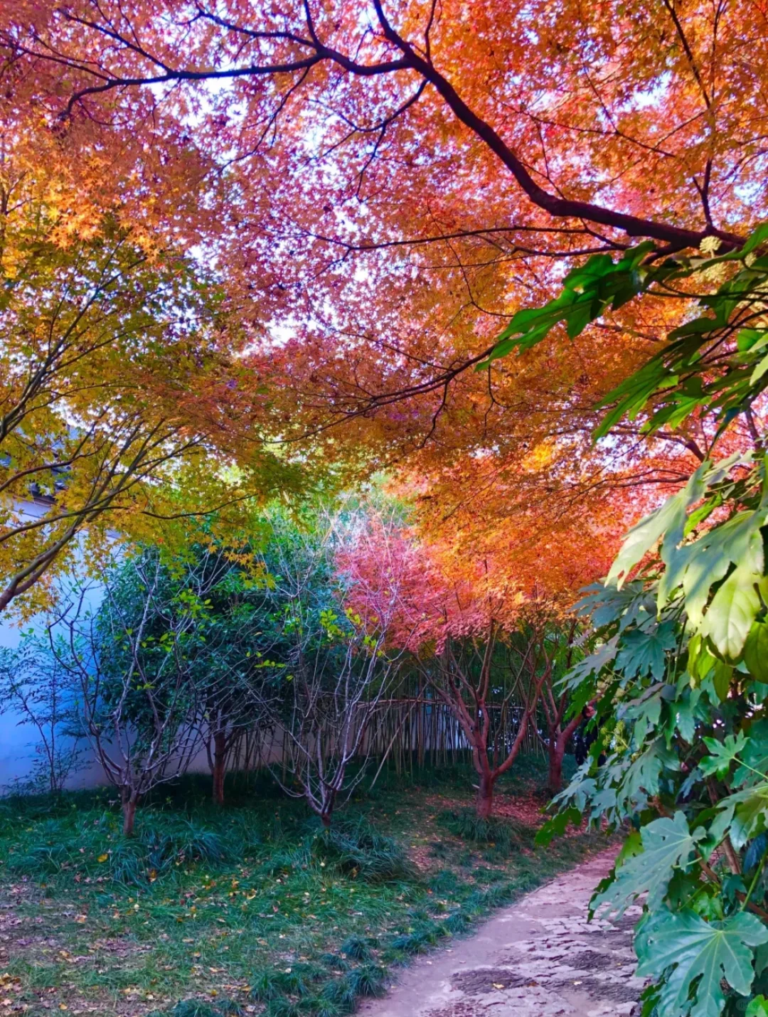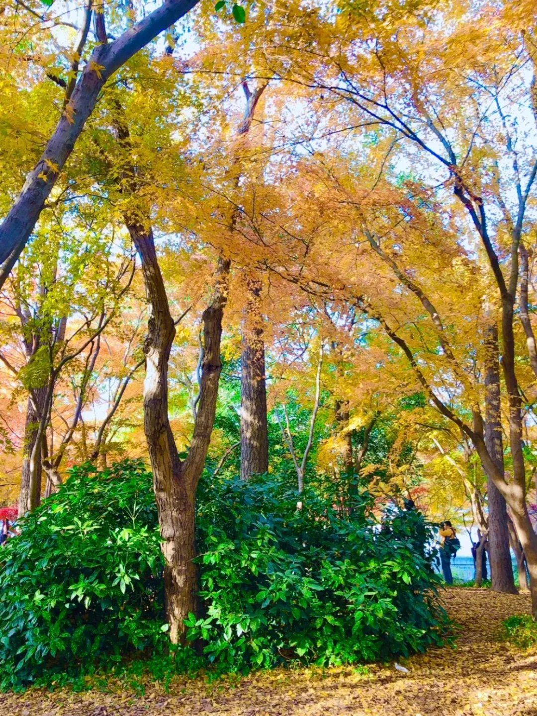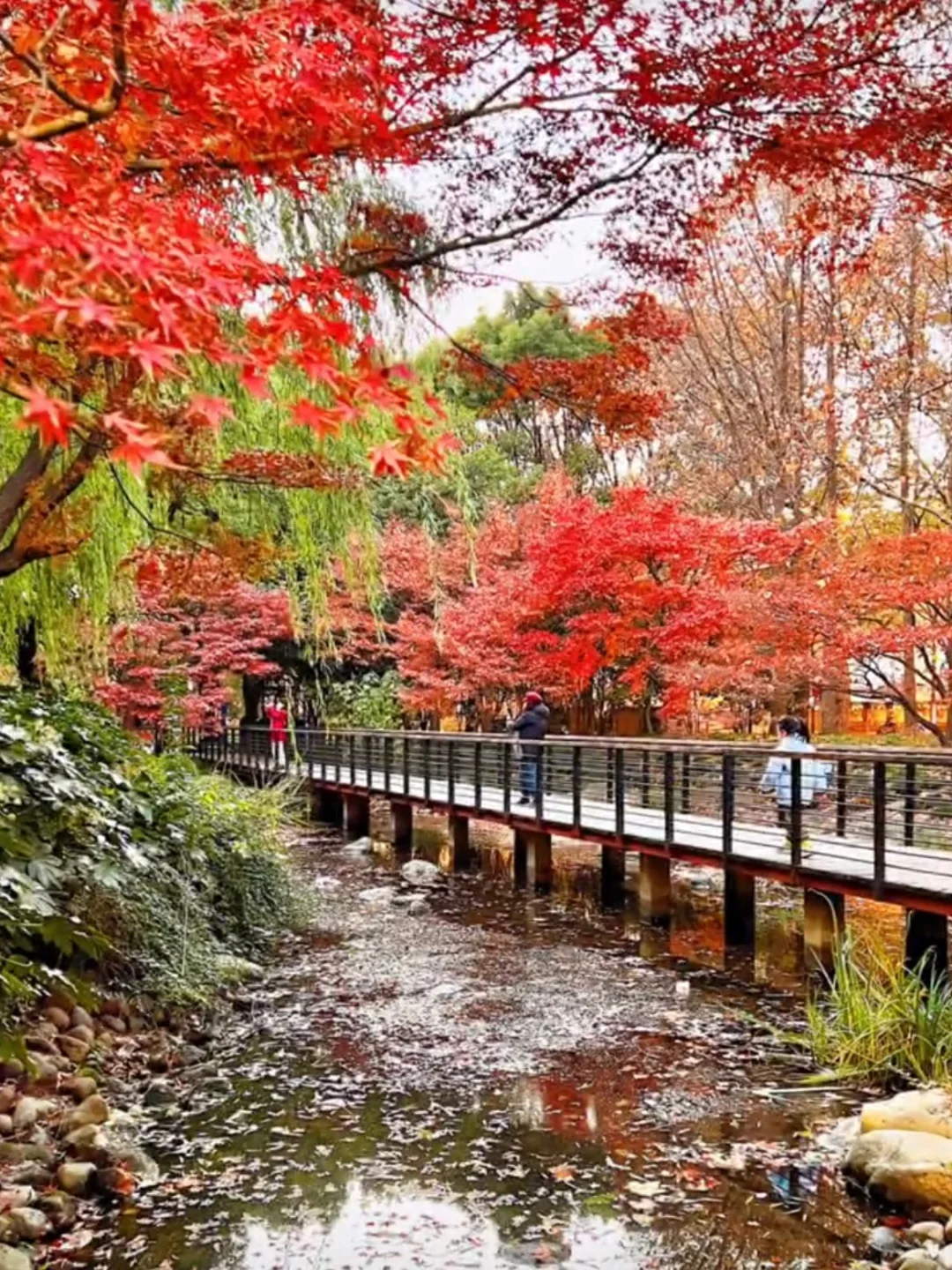 上海市中心的绿地公园,随处可见的水杉,银杏和红枫,像打翻的调色盘🎨一般美丽!网红打卡点长桥碧水真的感觉在京都。
