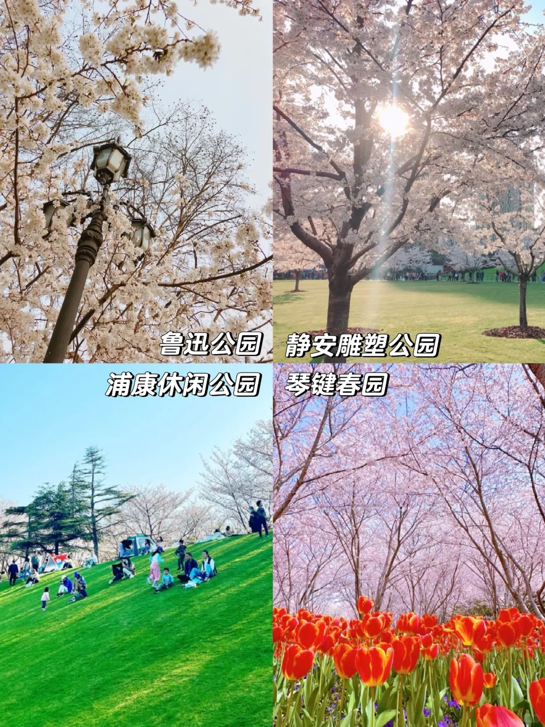 共青森林公园、顾村公园、辰山植物园、鲁迅公园、浦康休闲公园、琴键春园、世纪公园、徐汇滨江
