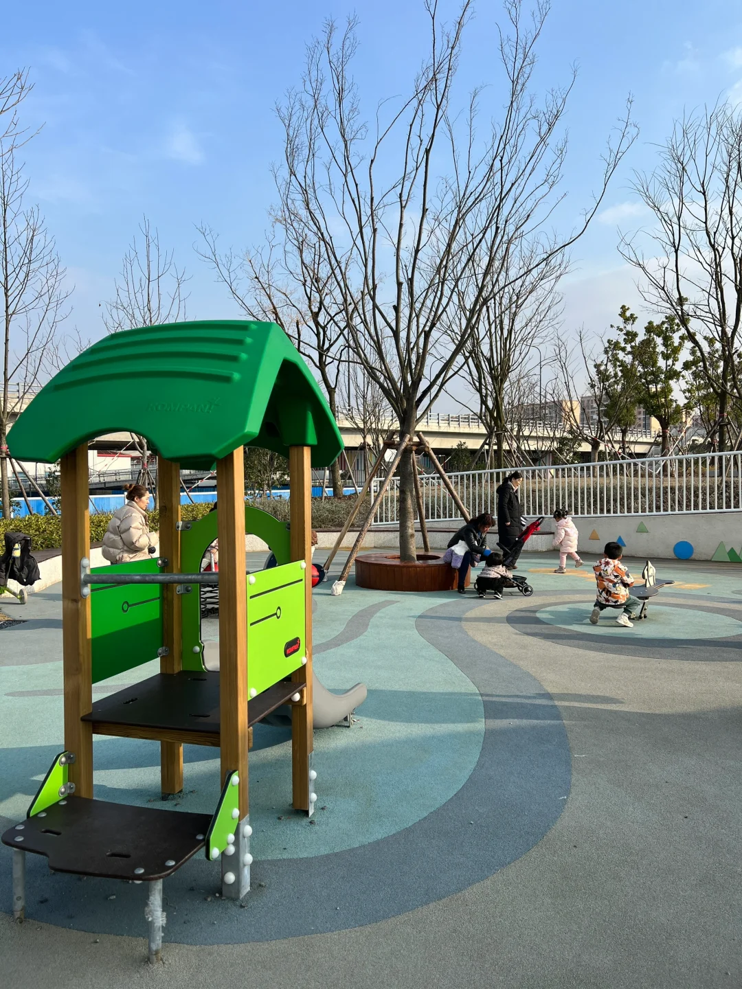 又发现了宝藏遛娃地,迫不及待分享给大家!就是半马苏河公园岸线二期,河边景致不错视野开阔👍有2块儿童玩乐区域:无动力儿童乐园+巨型沙池。