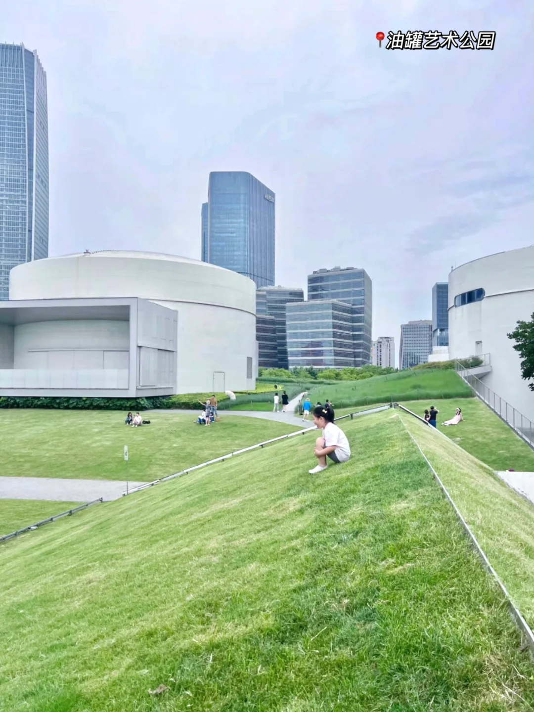 由曾经的航空储油罐改造变身成时尚艺术打卡地!粉黛与油罐相映衬很适合拍照,还有个草坪大斜坡,小朋友爬上爬下太开心了!