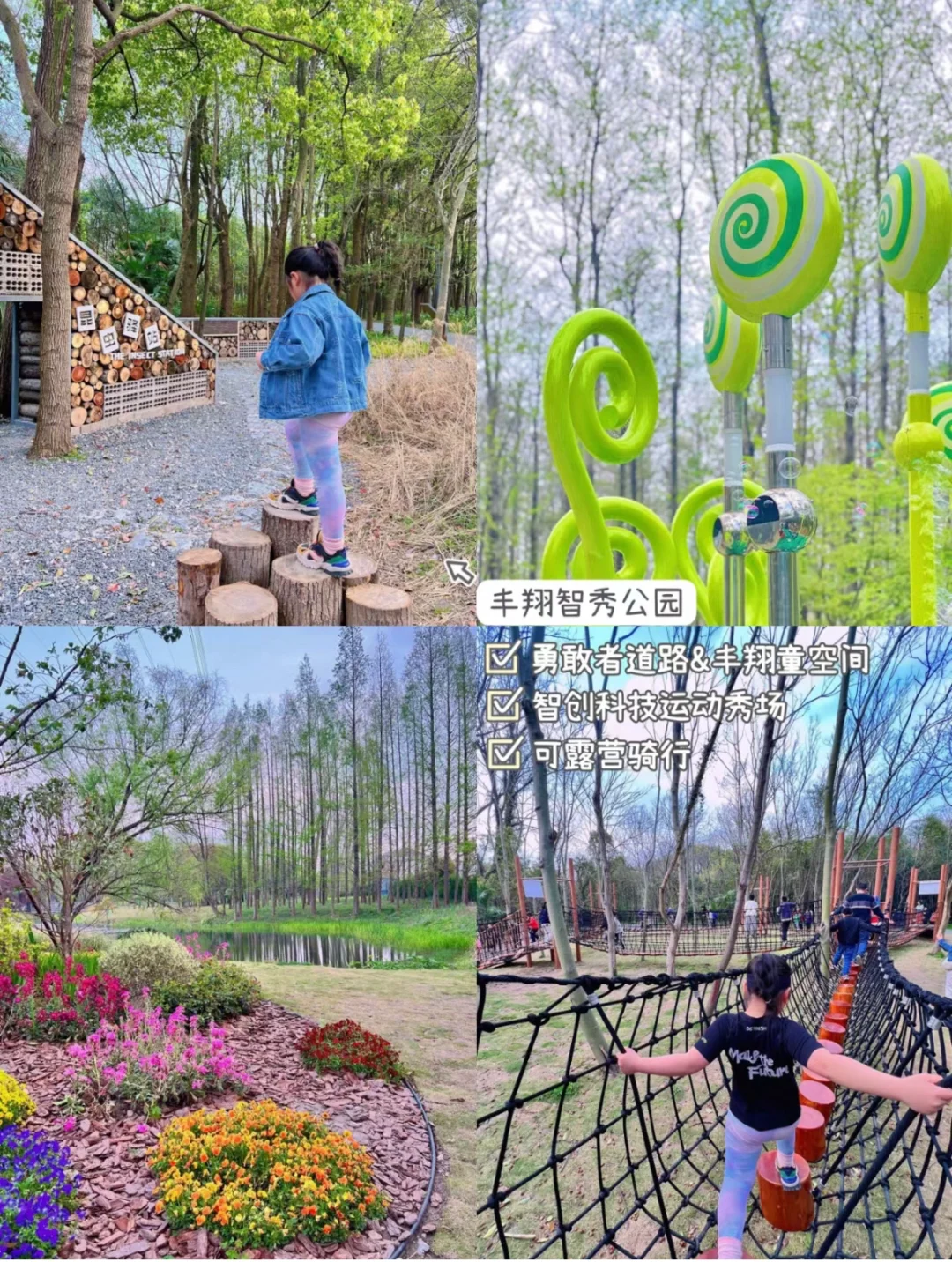 适合遛娃、踏青徒步、露营。科技运动秀场、拓展营地网绳勇敢者道路、昆虫之家和丰翔童空间。