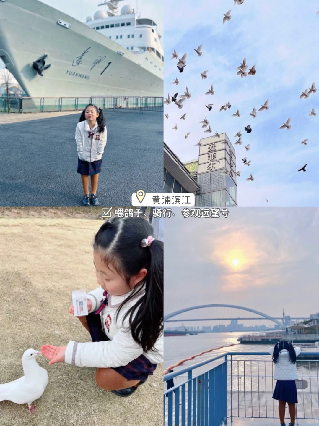 人少景美还能喂鸽的广场,可骑行还能走到附近的远望号参观。
