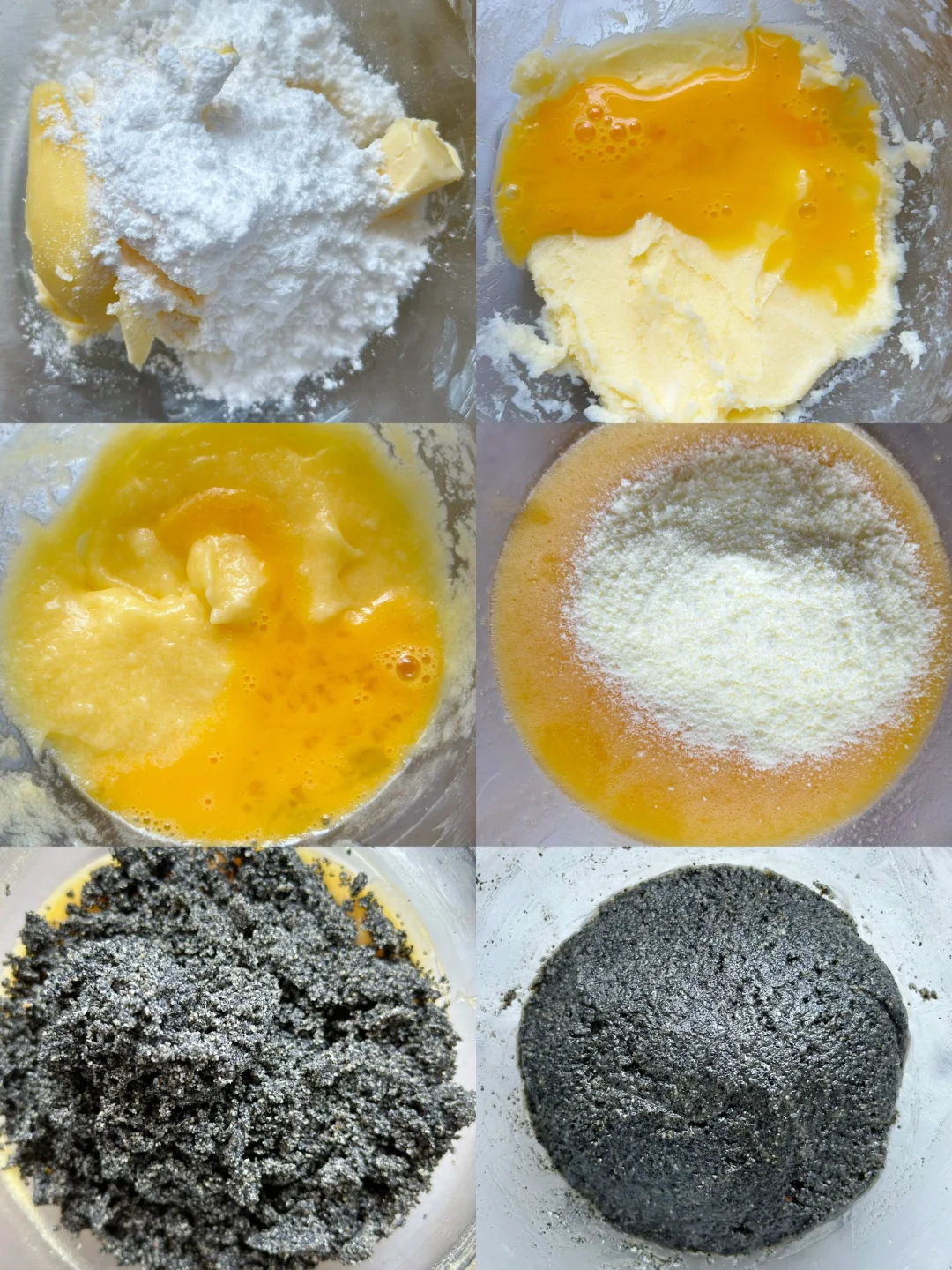 黄油50g,糖粉50g,全蛋液40g,黑芝麻粉150g