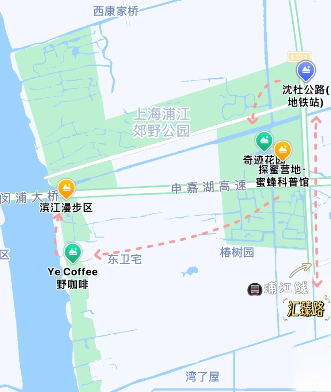 浦江线沈杜公路站🔁汇臻路站-蜜蜂科普营-奇迹花园-野咖啡-闵行滨江