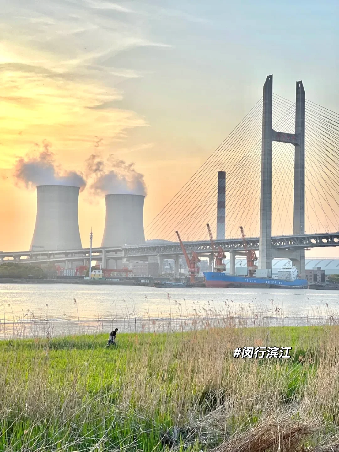 咖啡馆出来右手边就是闵行滨江,可骑行,来打卡落日很美巨出片🤳