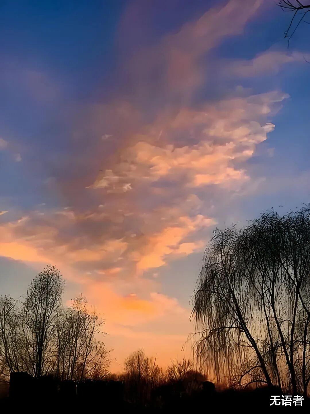 “暖云冉冉”中,“暖”赋予云朵温度,“冉冉”生动勾勒出暖云轻柔飘动之态,它们似带着融融暖意,温柔地将前轩环绕,给人以舒适惬意之感。