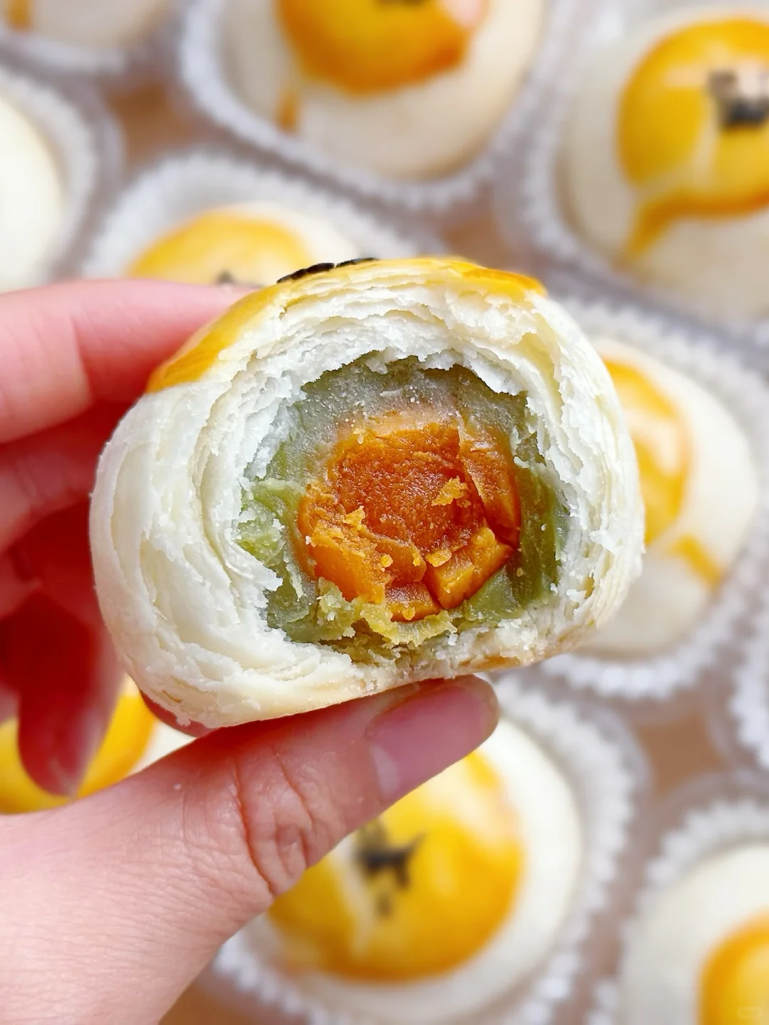 蛋黄酥是我的最爱啊!酥酥脆脆的~出炉就能干几个!每一个都是层层起酥呀~