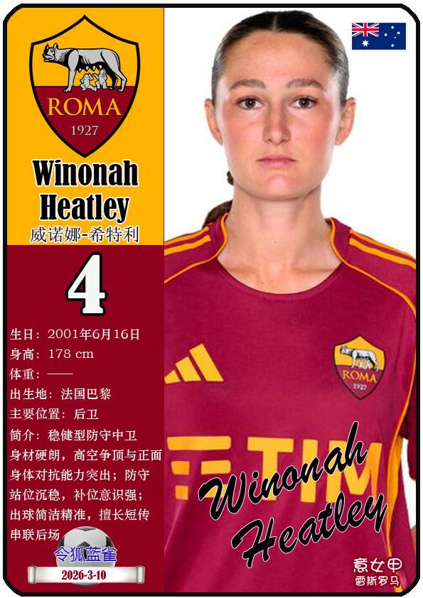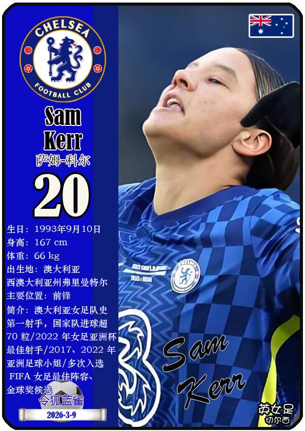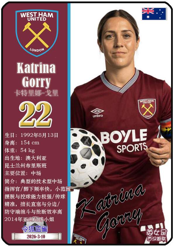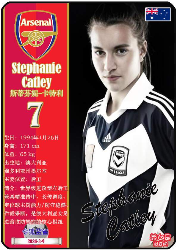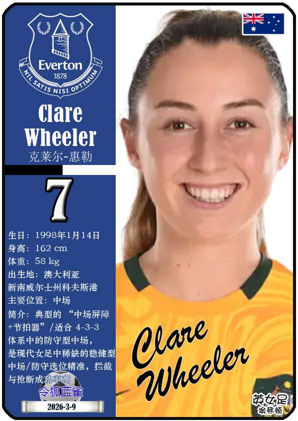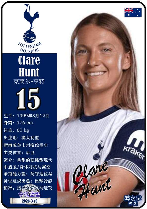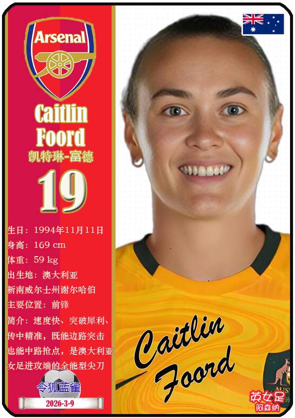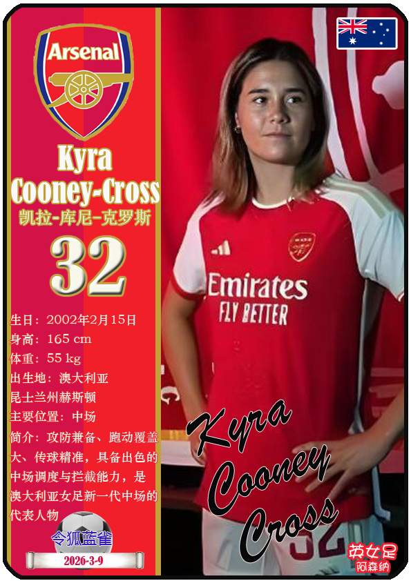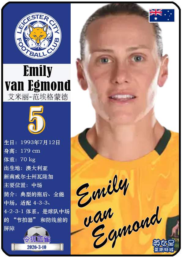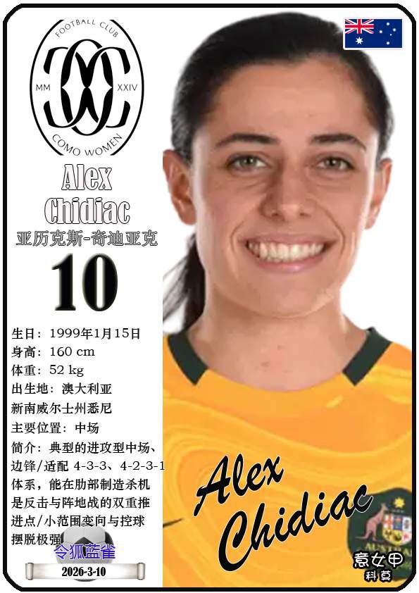 2026年亚足联女子亚洲杯决赛阶段于2026年3月1日至21日在澳大利亚悉尼、珀斯及黄金海岸举办。东道主澳大利亚女足目前FIFA世界排名第15,亚洲排名第3(中国女足FIFA世界排名第17,亚洲排名第4)。本届女足亚洲杯澳大利亚女足主教练是乔-蒙特穆罗,队内拥有球员克莱尔-亨特、艾莉-卡彭特、萨姆-科尔等。本期盘点澳大利亚女足的24球员(按所属俱乐部分类排序):