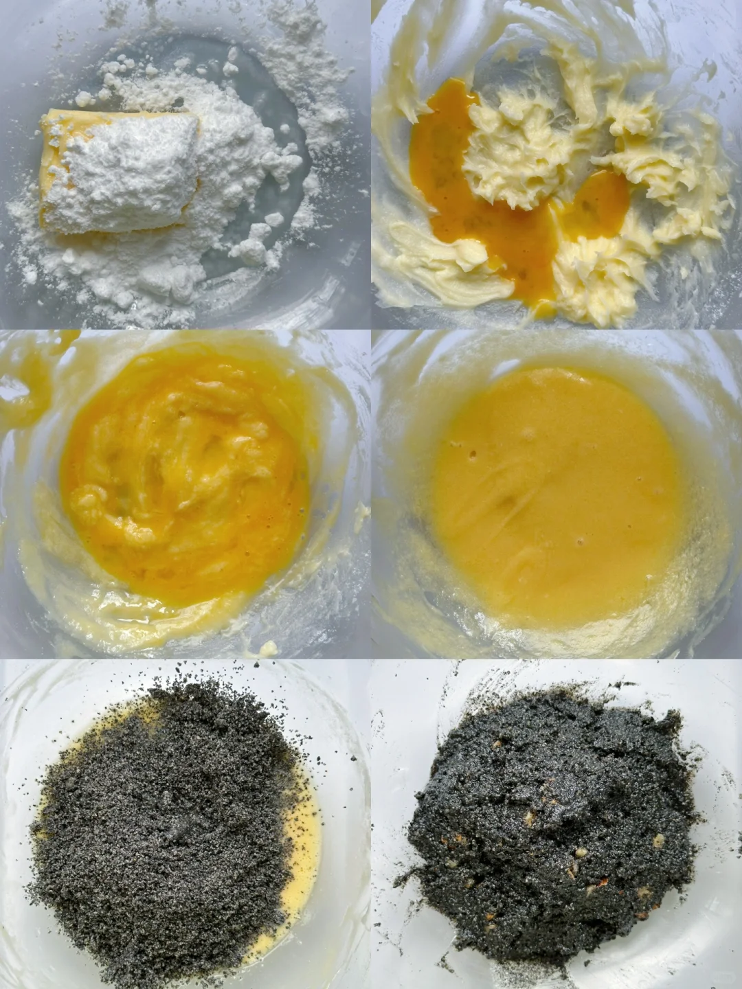 🌸黑芝麻奶酥馅:黄油软化加入糖粉搅拌,少量多次加入蛋液拌匀,再加入黑芝麻粉拌匀,最后加入核桃碎拌匀即可。
