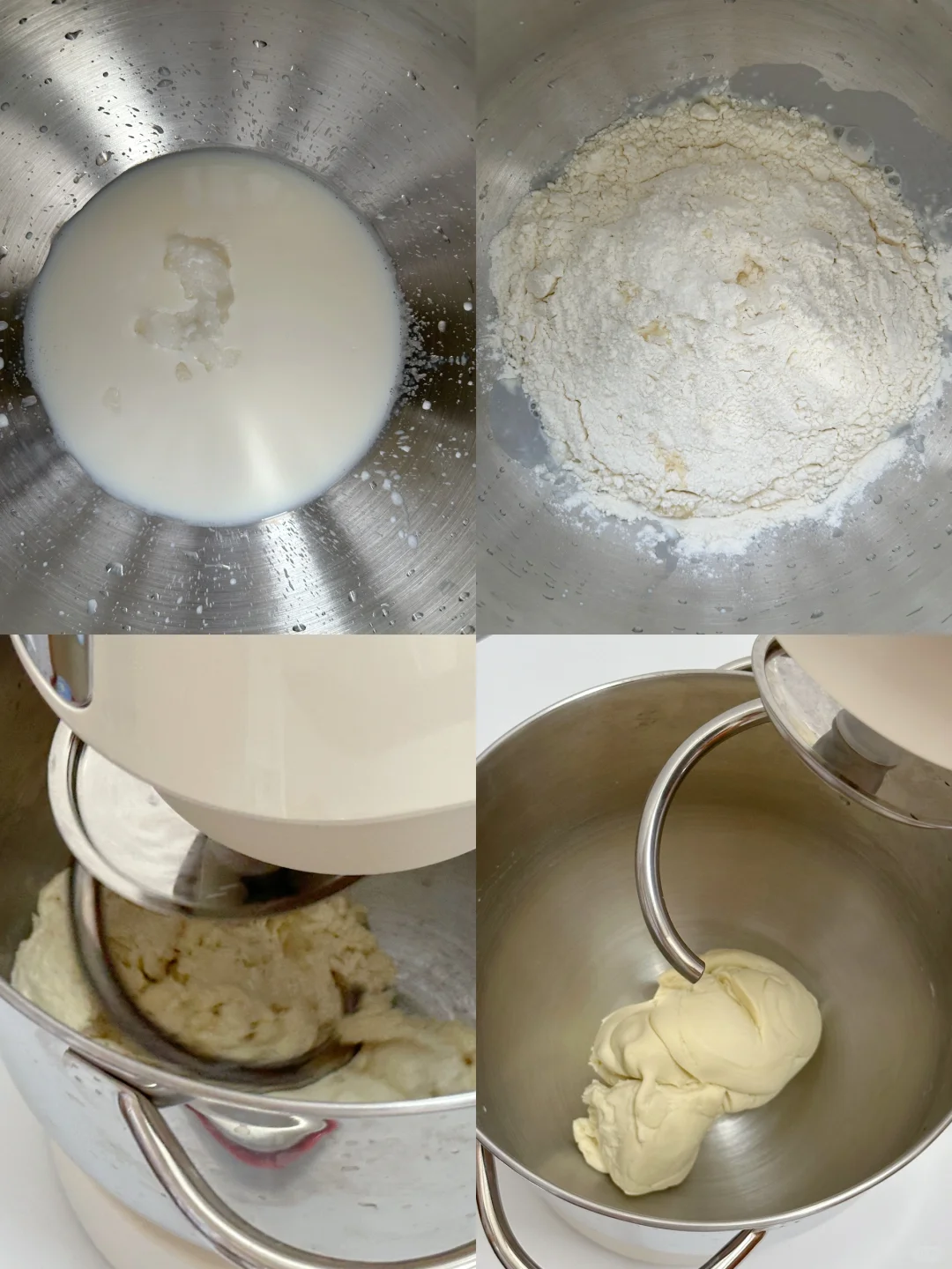 🌈配方:中筋粉350g,牛奶170g,椰子油10g,细砂糖5g,鲜酵母6g。