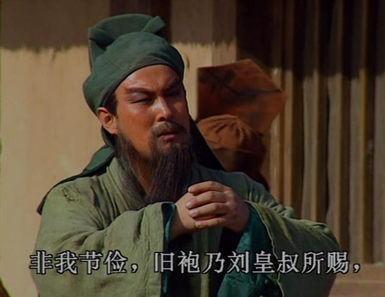 关羽为什么要穿一身绿色?刘备送他的绿色战袍? 甚至帽子都是绿色的? 莫非,老罗给他安排的一身绿色衣服? 如果有绿色的马,老罗估计要给关羽安排一个绿的战马了。 此外,还有赵云,被安排了一身白袍,还给安排了一个白马。