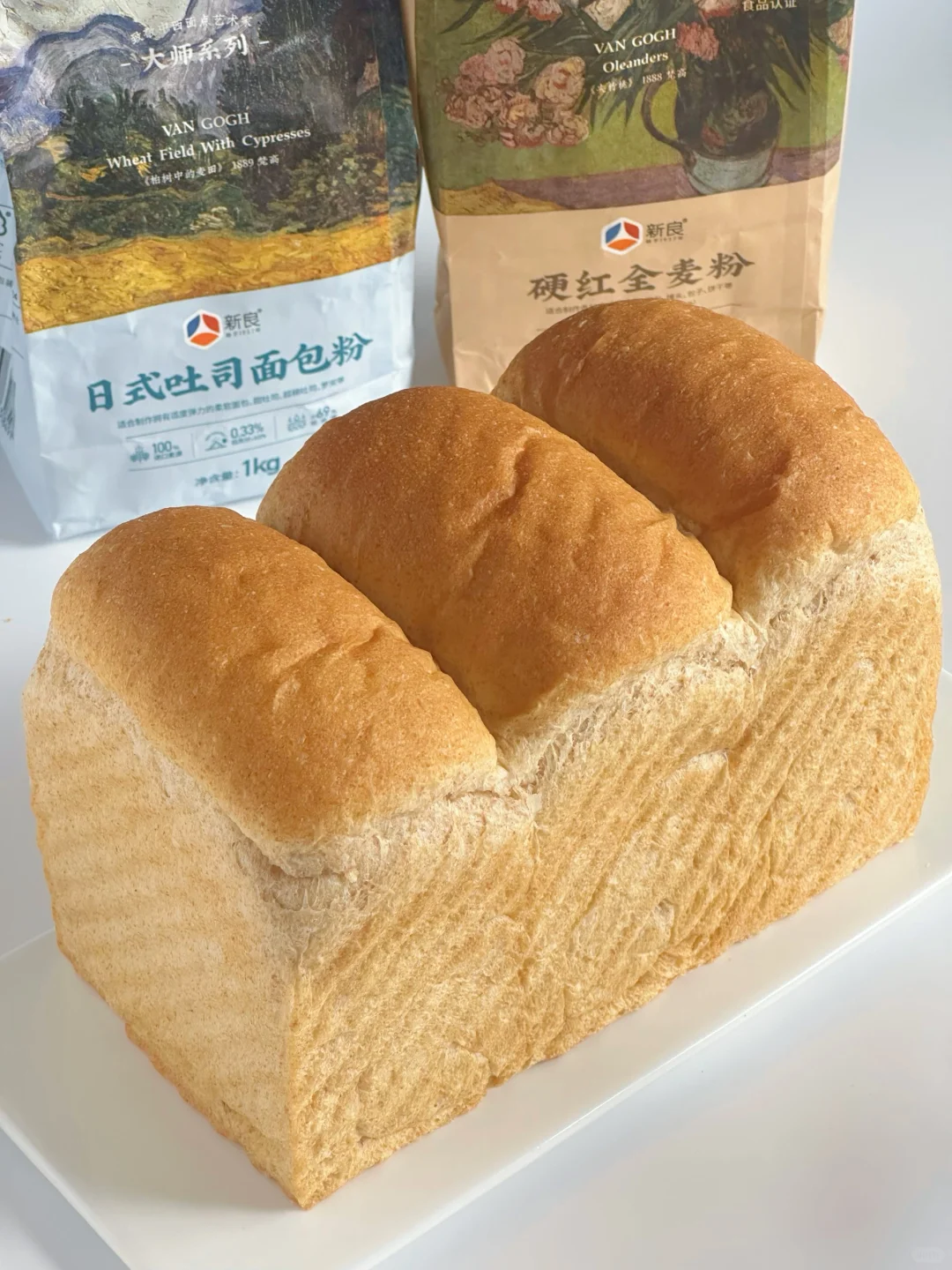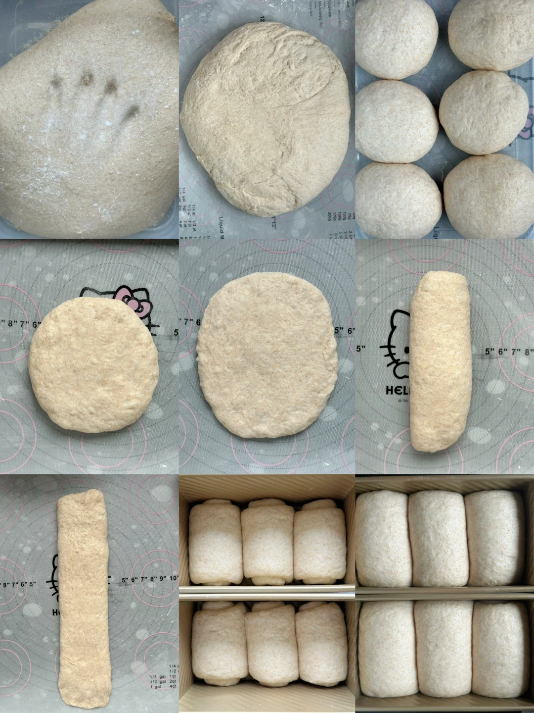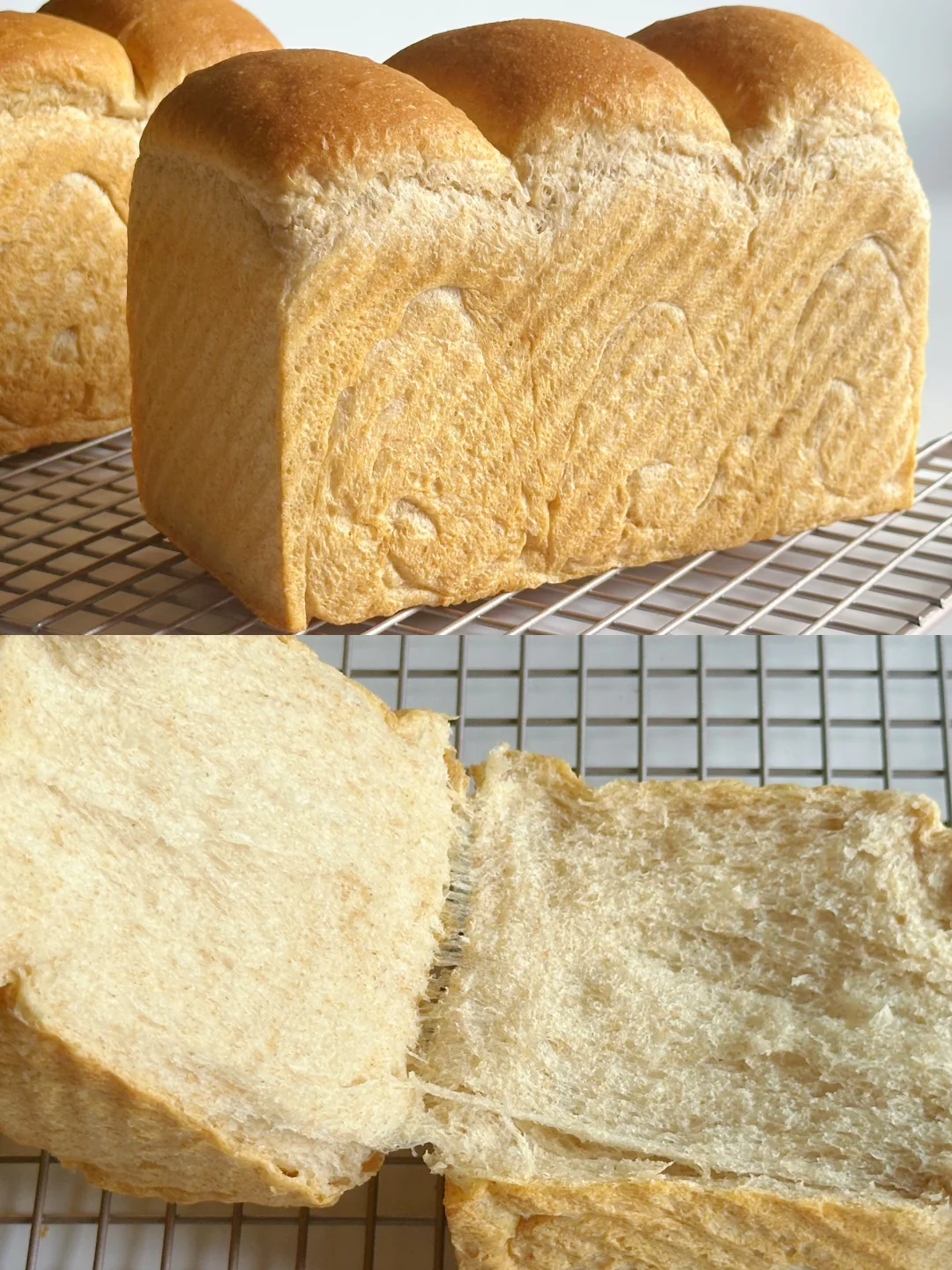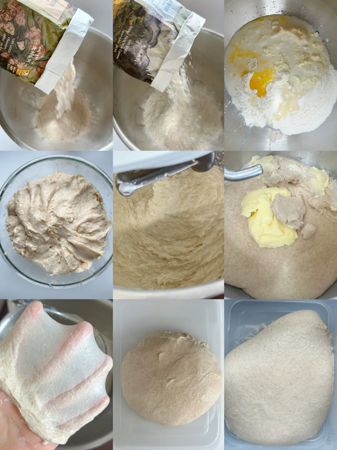 ▪️高筋粉260g,全麦粉208g,奶粉20g,牛奶370g,烫种104g,糖30g,盐6g,酵母15g,黄油40g,