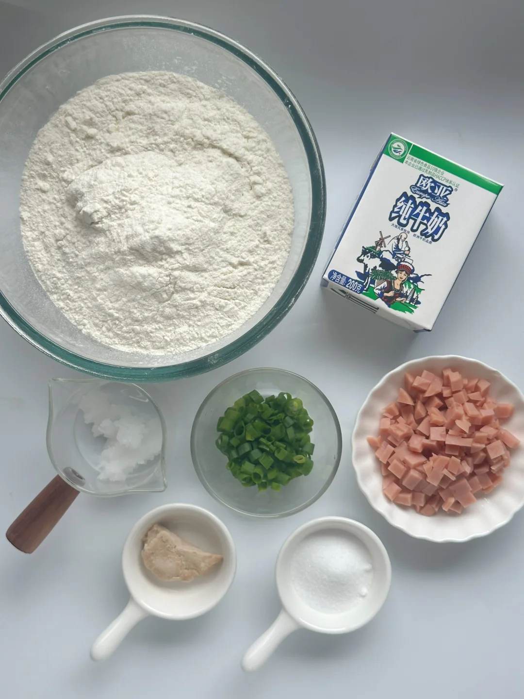 🌈配方:中筋面粉350g,欧亚纯牛奶170g,椰子油10g,细砂糖5g,鲜酵母6g。