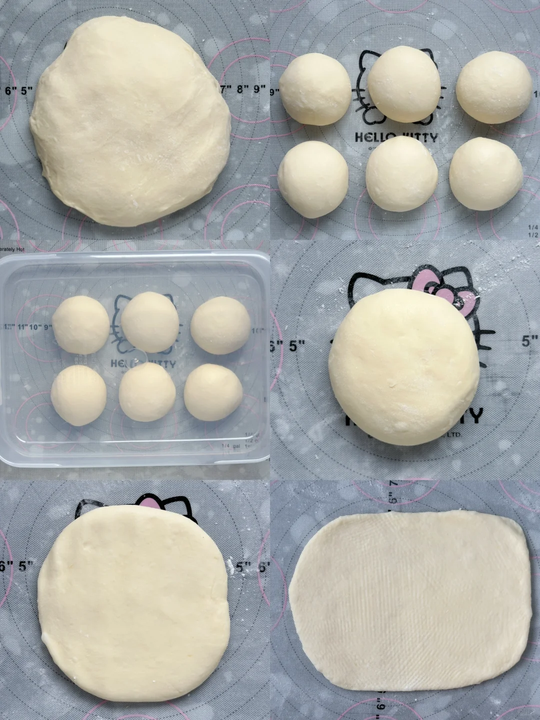 3️⃣打好的面团直接分成6份,滚圆,松弛15分钟。