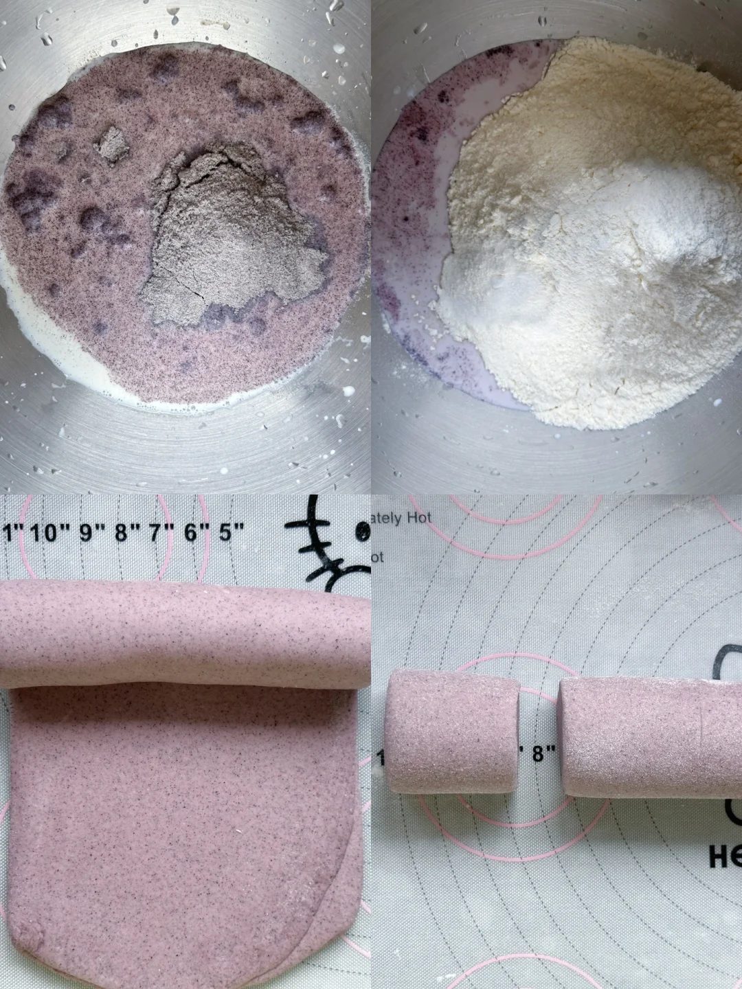 🔺揉好的面团擀成长方形面片,喷一点水,卷起来,切成段,整理一下边角。