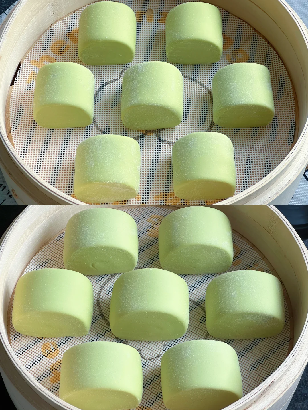 🔺做好的馒头胚子直接室温发酵至1.5倍大,发酵完成冷水上锅蒸12分钟焖2分钟即可。