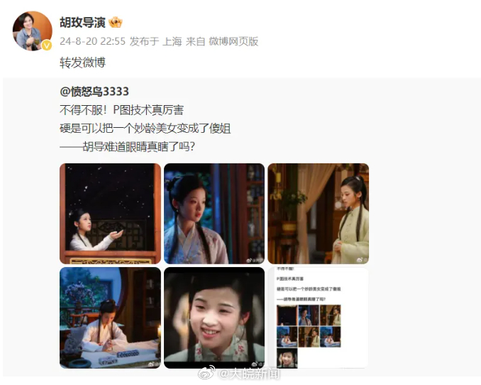 此前,针对张淼怡被嘲“丑”,导演胡玫曾多次发剧照力挺演员,并称有人恶意丑化张淼怡。#张淼怡发文回应#(九派新闻)