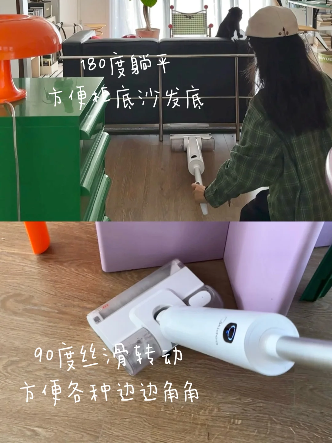 - 养猫家庭毛发多 海边城市雨水多 每次打扫真的头疼!又要扫地还要拖地 想用洗地机的心达到了顶峰 做了很多攻略,最后选择美的GT1 这款躺平洗地机是真的可以180度躺平 不用弯腰就能擦到沙发柜子底下 而且9cm超薄哦! 又薄又能躺,低矮死角的灰尘躲都躲不掉 真的怕爱上拖地(哈哈哈我开玩笑的) 不过用洗地机清洁真的简单很多 推荐给跟我一样手无缚鸡之力的宝宝们 推荐给跟我一样的养宠家庭 推荐给跟我一样既要实用性又要高颜值的宝子 -