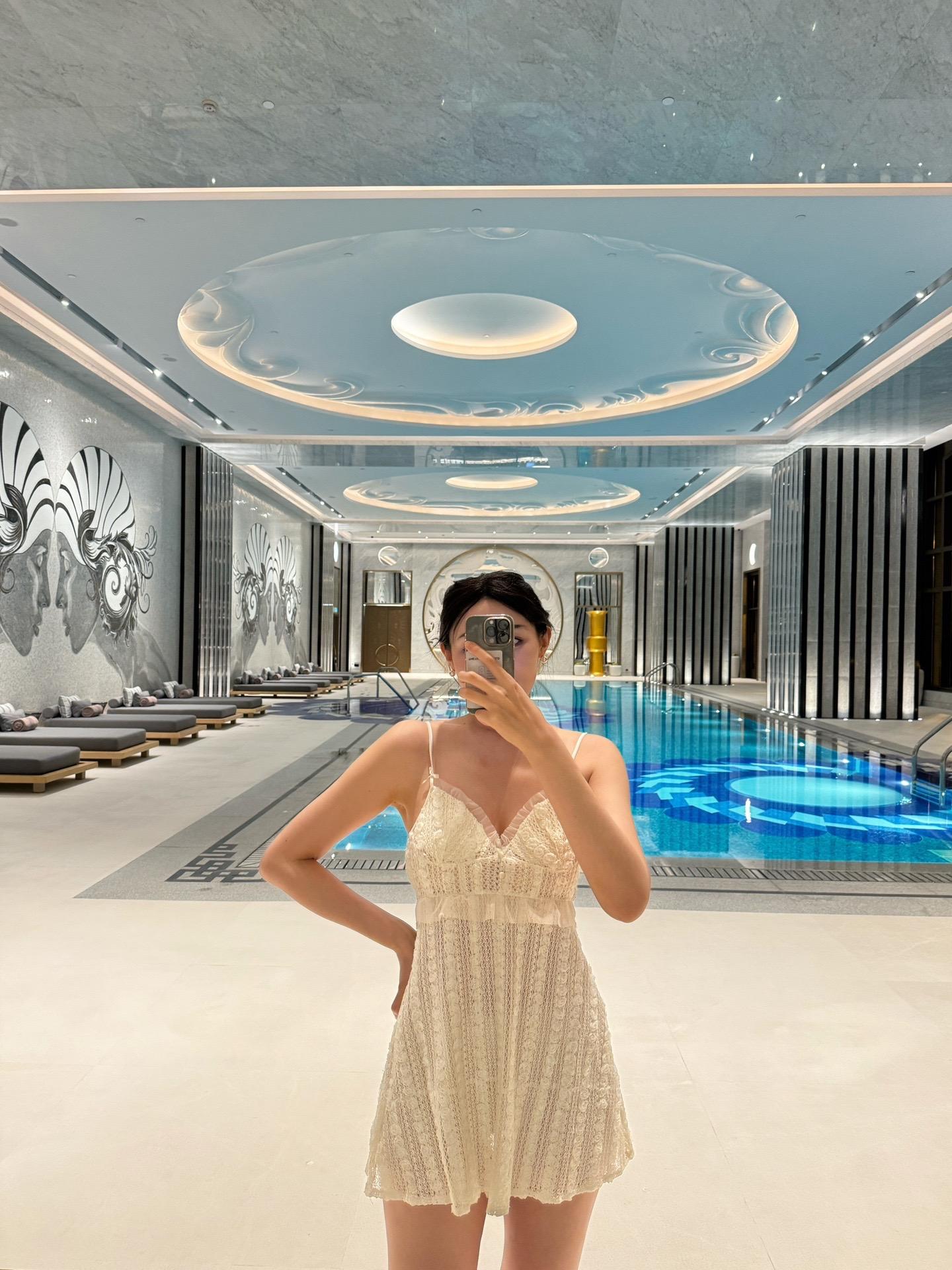 泳池:老佛爷酒店的泳池客人不多,进去有种包场了的感觉,分为室内和室外两个泳池,都很新很大,室内挑高也非常高,整