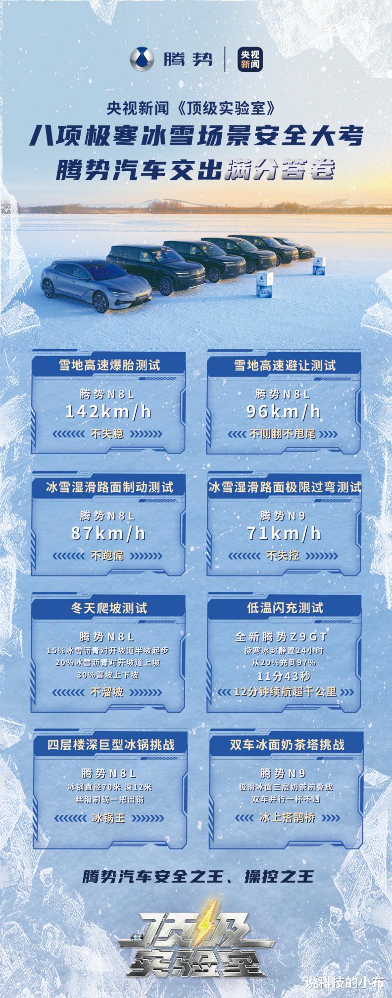 3月16日,央视新闻《顶级实验室》栏目在零下30℃极寒测试场,全程真实纪录腾势汽车(全新腾势Z9 GT、腾势N8L、腾势N9)在极寒环境下的硬核表现。搭载第二代刀片电池的全新腾势Z9 GT,实测在户外极寒冰封静置24小时后,12分钟内便充到97%,冬天充电几乎不受影响。并且全新腾势Z9 GT还有超1000km的超长续航,让你不管是在夏天还是冬天都不会再有补能和续航的焦虑。5分钟充好,9分钟充饱,零下30℃只多3分钟,第二代刀片电池让电动车的补能像燃油车一样快,可以说彻底解决电动车冬天充电慢的难题。