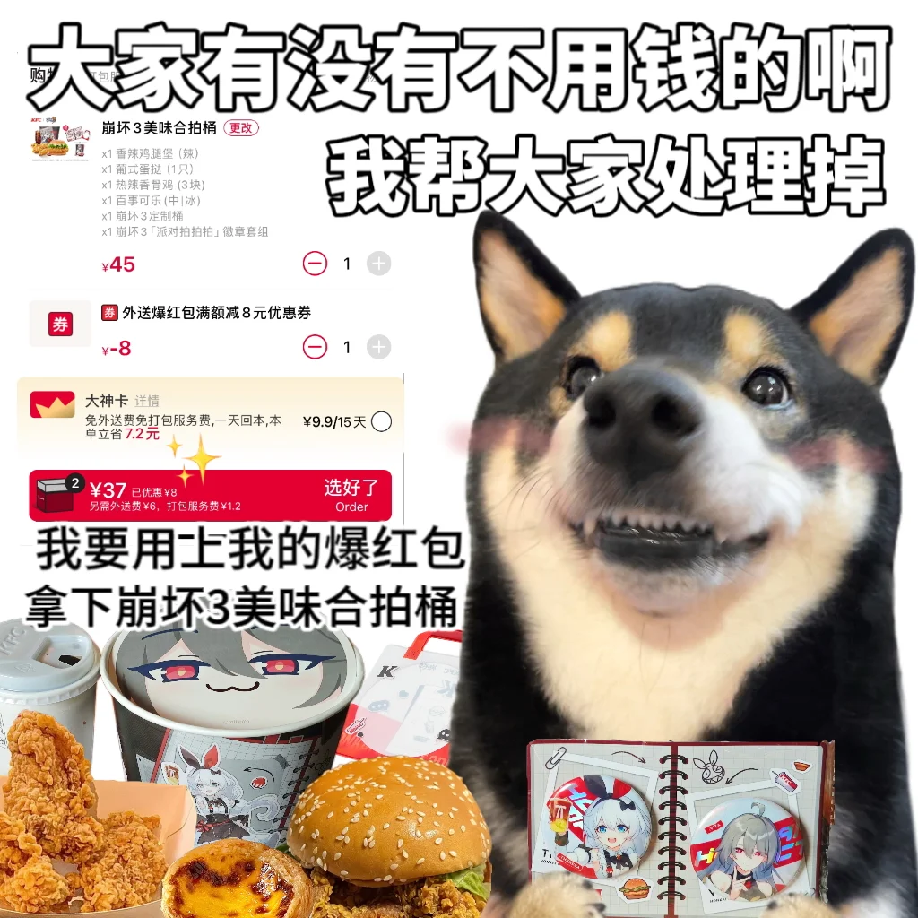 省归省,吃归吃~ 作为吃货当然是既要吃也要省🤤 肯德基APP现在有周周爆红包活动当然不能错过! 能省则省!想吃就吃😁 我这周爆了8元,听说这个活动zui高爆至18r,保底省8r。 现在还有肯德基和崩坏3联名套餐,用爆红包直接抵扣配送费了,在家就能拥有~ 还有周边送!这谁忍得住 我的吧唧我来了!