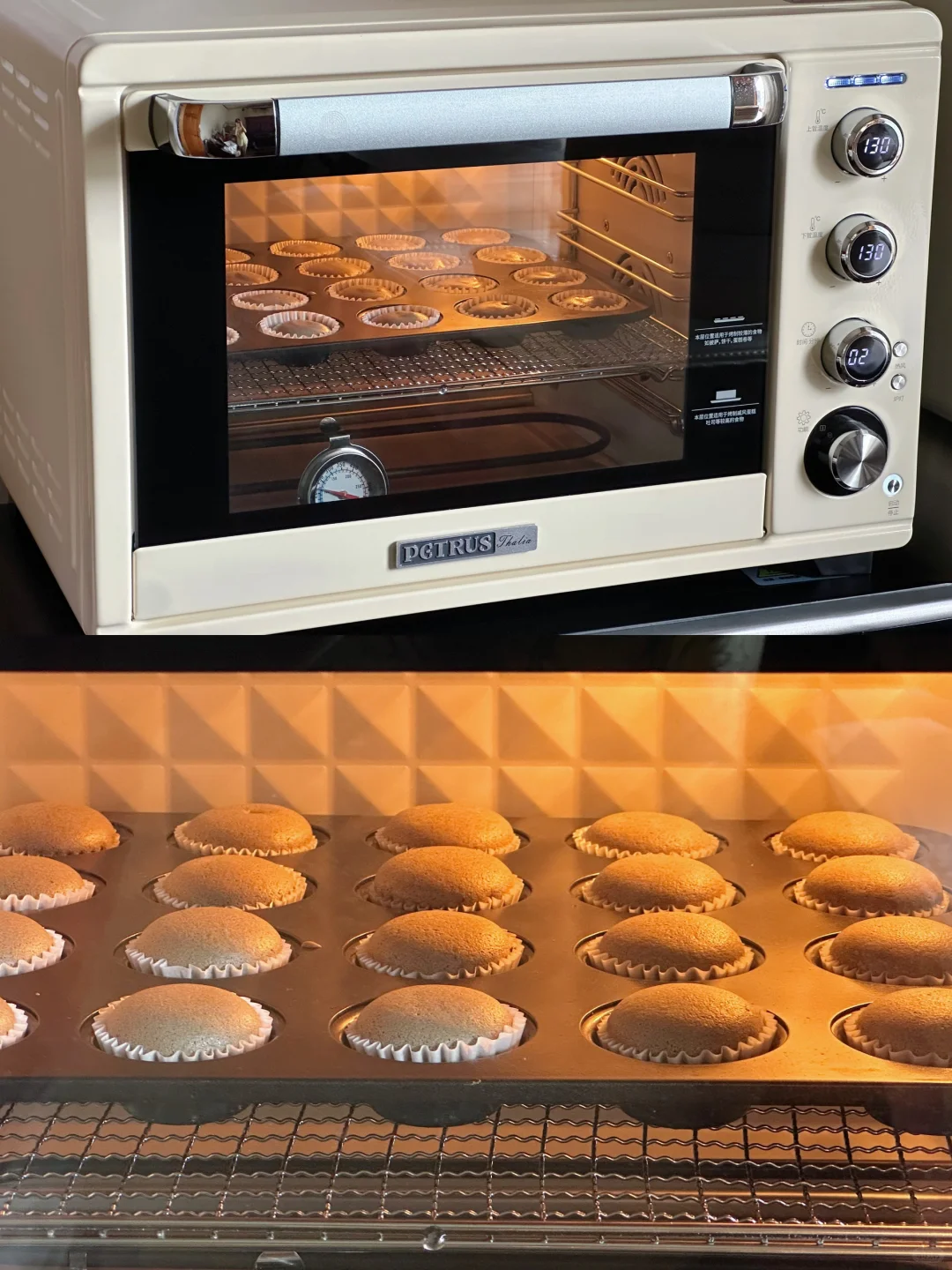 ▪️烤箱温度时间根据自己的烤箱脾气做适当调整。我自己常用的温度目前用这款烤箱烤蛋糕没翻过车。M型发热管受热也比较均匀,整体上色还是很不错的,主要这白色内胆和白色烤盘拍照真的太好看啦!