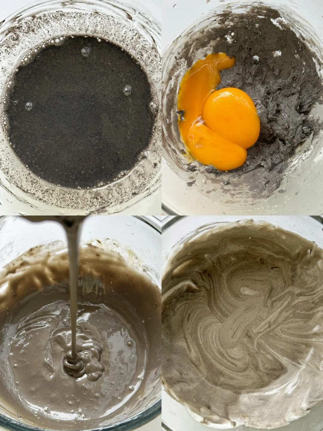 ▪️面粉吸水性不一样,鸡蛋大小不一样,水量添加会有差异,主要参考蛋黄糊的稠度,如图。