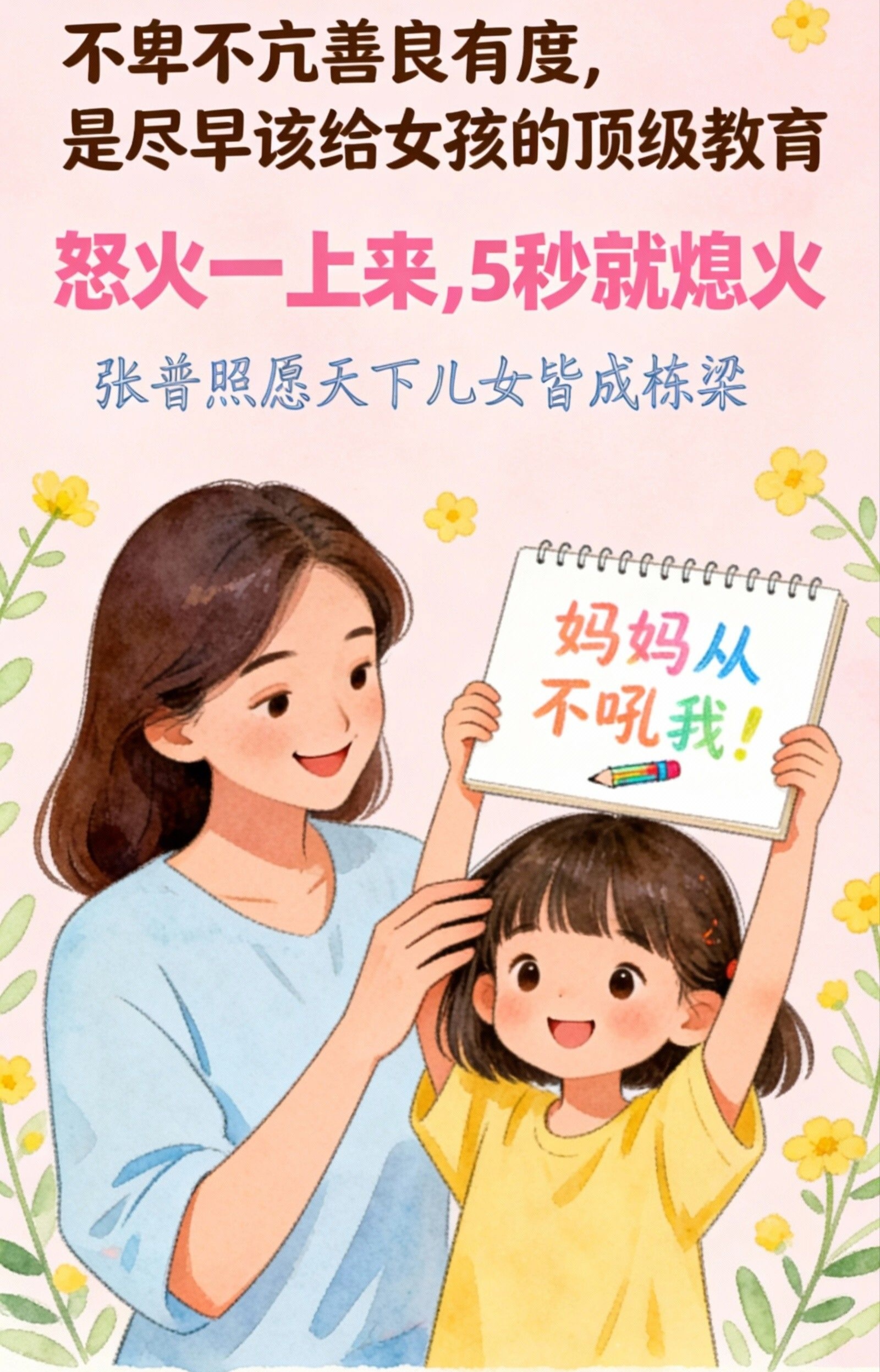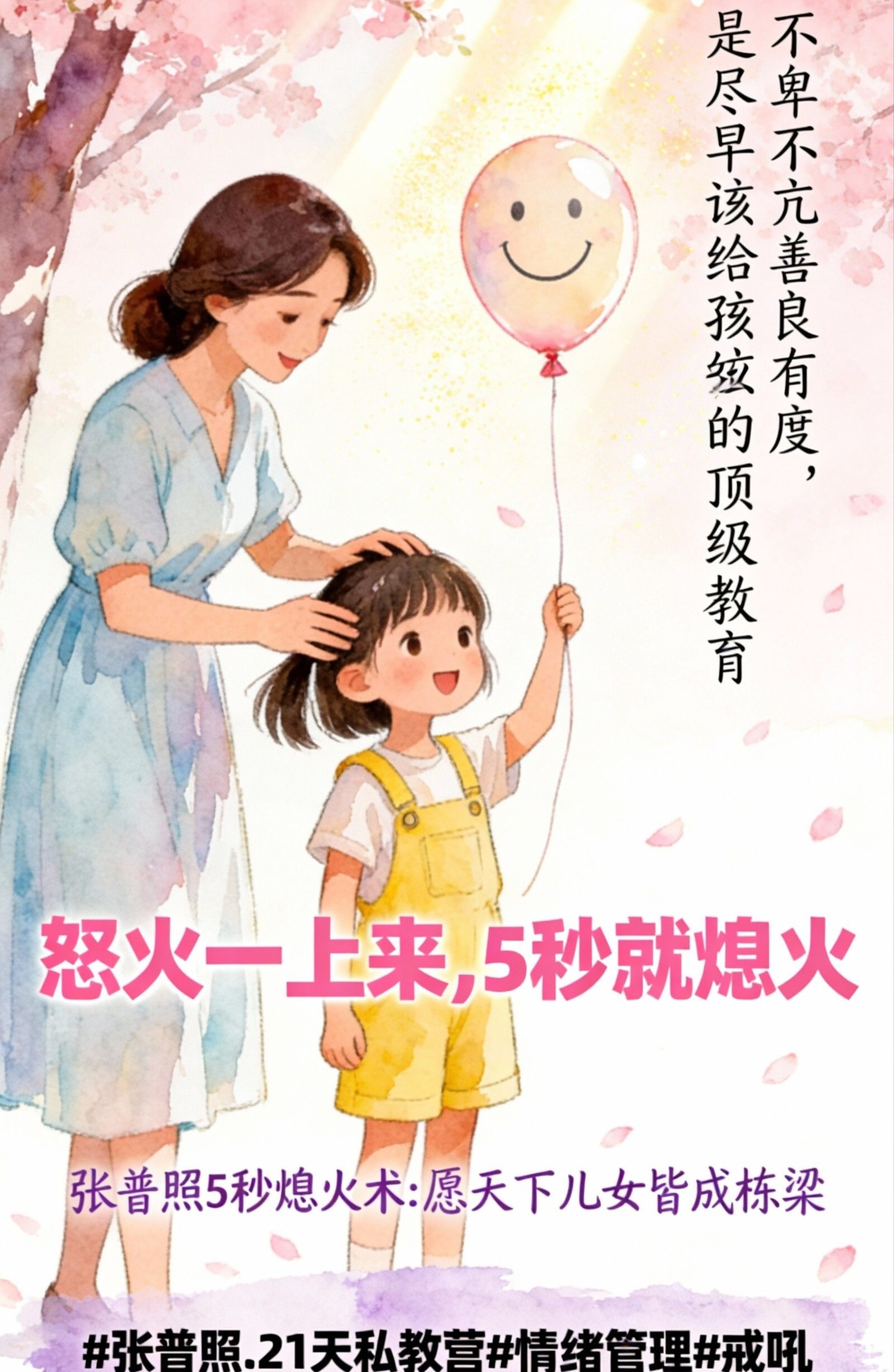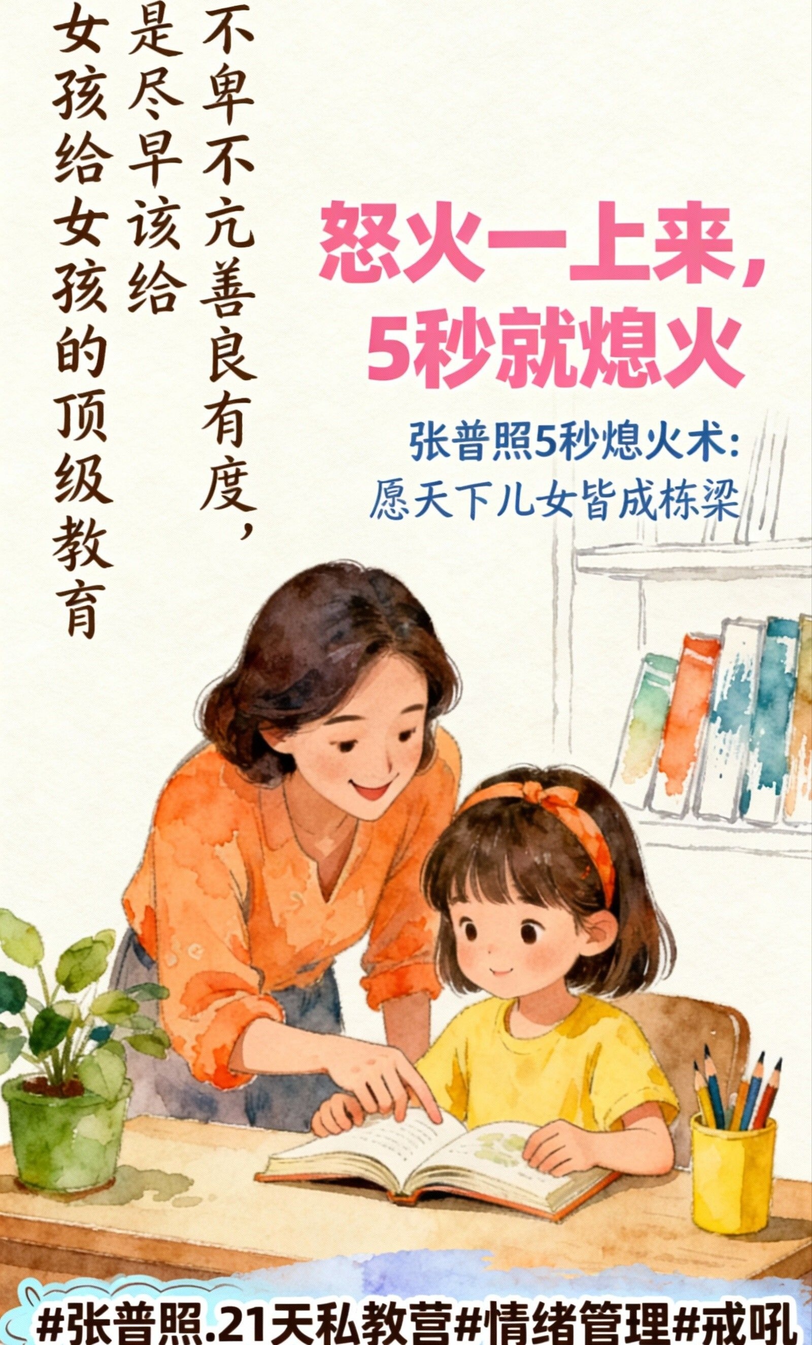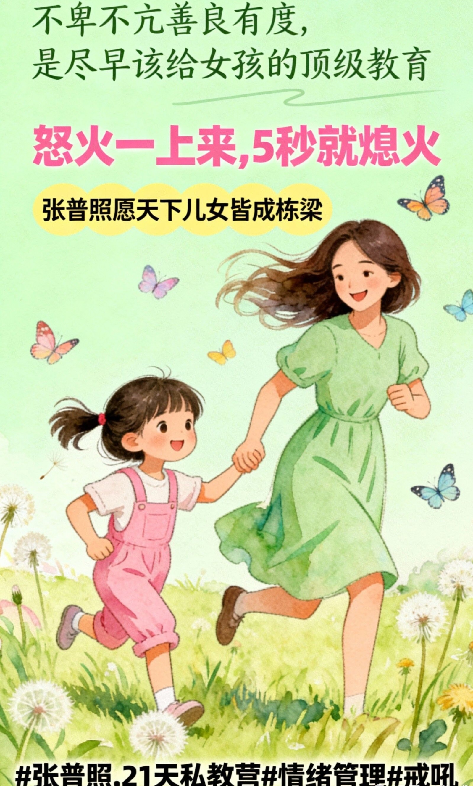 张普照5秒熄火术,就是你从 “情绪的奴隶”(卑或亢) 觉醒为 “情绪的主人”(平静坚定) ,真正给予女儿顶级人格教育的唯一路径。这不再是关于“如何教育女孩”的知识探讨,而是关于 “你如何先成为一个情绪完整、内在有力量的人,从而成为孩子最棒的命运示范者” 的生命革命。这条路,就从你练习在每一次情绪即将失控前,用5秒完成内在重置开始。