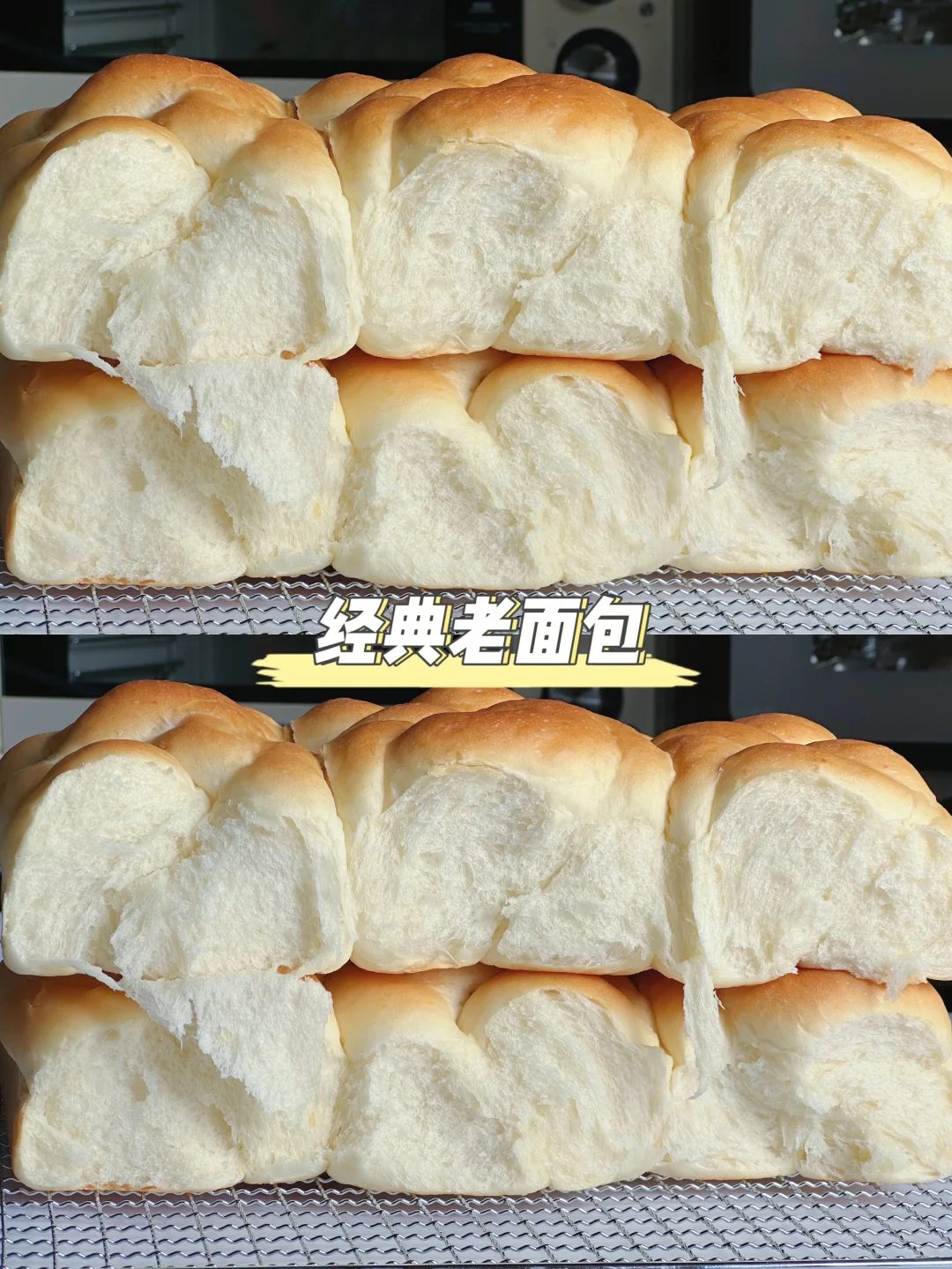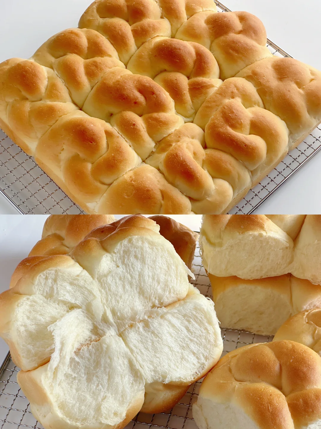 7️⃣发酵好的面团刷上牛奶或喷水,5400烤箱提前预热,上火160°C下火200°C烤20分钟,上色满意后盖锡纸,出炉后立马震盘,趁热再刷一层融化的黄油!脱模晾凉后密封保存~