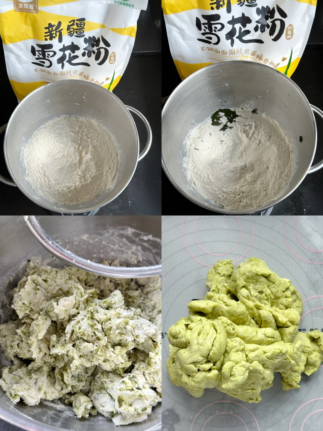 当然还要看面粉的吸水性了!这次用了一款新疆的面粉,麦香味十足,蛋白质含量高,比较筋道,水量也要多一点才更好揉,但是用机器压就无所谓了!