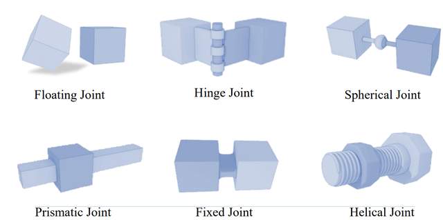 除了传感器建模外,精确模拟各种关节类型(如浮动、铰链、球形、移动、固定和螺旋)对于在仿真平台中复现机器人的结构和运动特性至关重要。这些关节的组合决定了机器人的自由度(DOF)和灵活性,进而影响其在复杂任务中的表现。通过在仿真中精确建模这些关节,开发人员可以在虚拟环境中测试和优化机器人设计及控制策略,从而提升系统性能和可靠性。