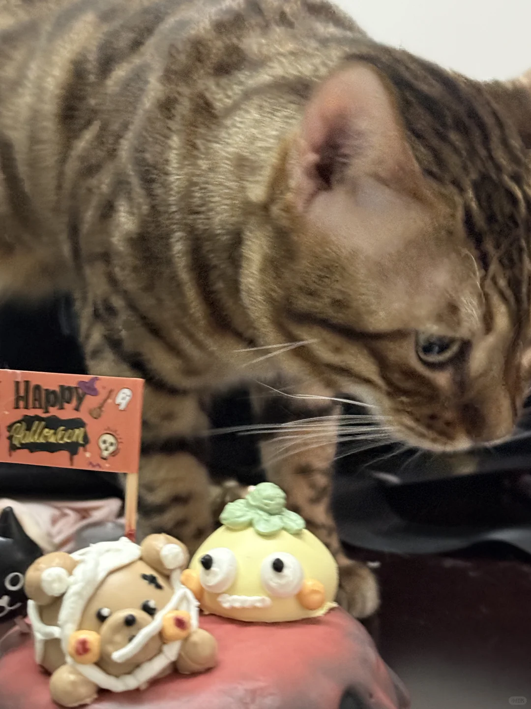 又是一年万圣节噜!这次cos小恶魔👿 📸16pro的后置闪光灯拍照尊嘟很不错! 还吃到了敲可爱的万圣节小蛋糕 好看又好吃 上面的两个👻都可以吃滴 把小猫都馋到噜🐱 🍰:udelighted层层见喜