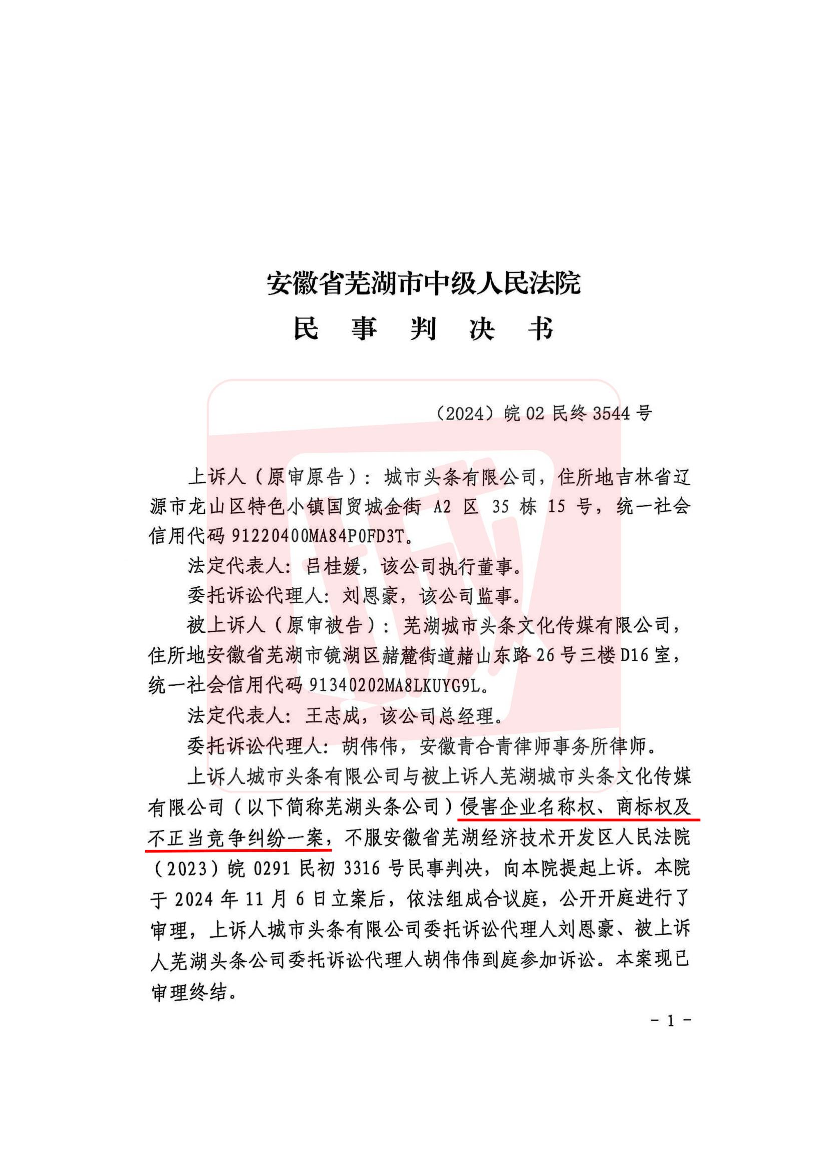 安徽省芜湖市中级人民法院民事判决书(2024)皖02民终3544号