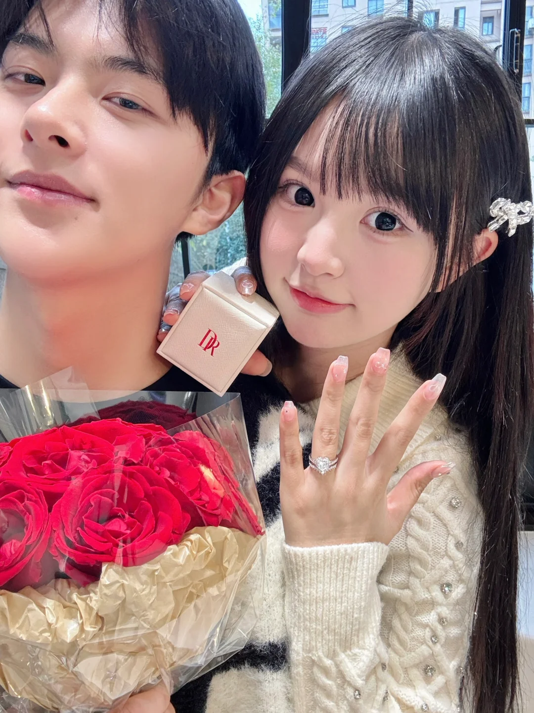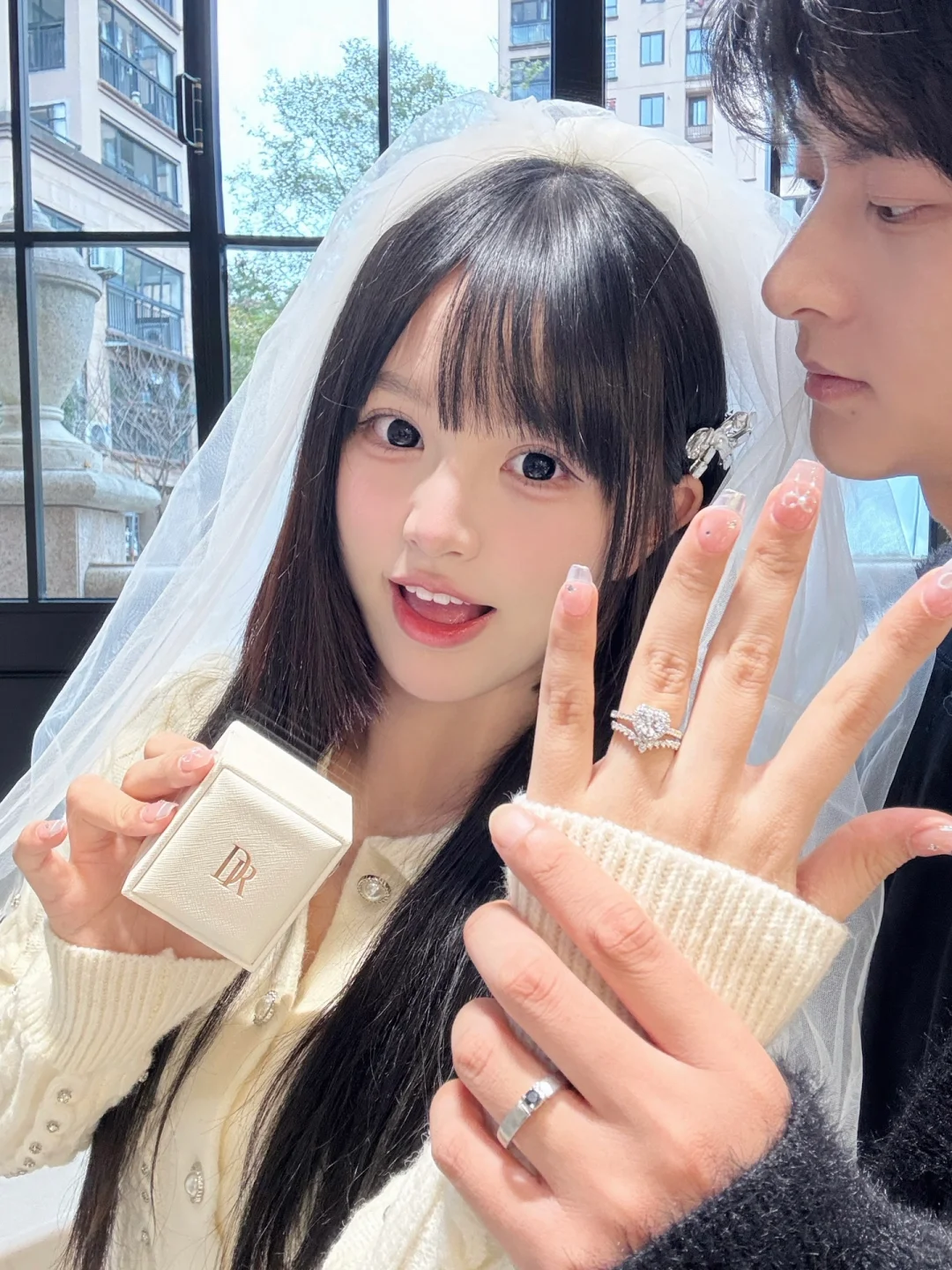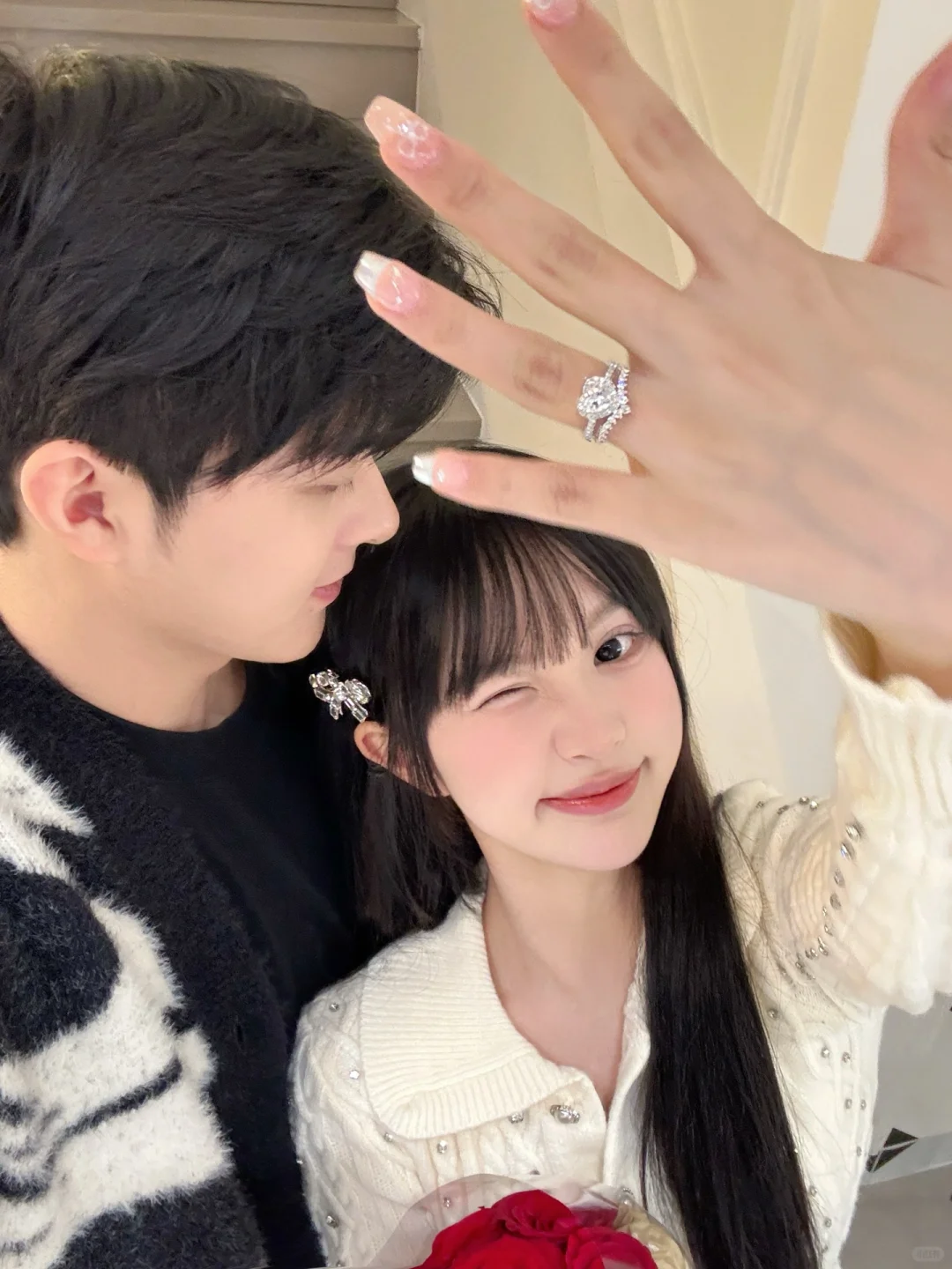 天噜!甜度超标啦!果然甜妹的戒指就得是爱心的,太配了!