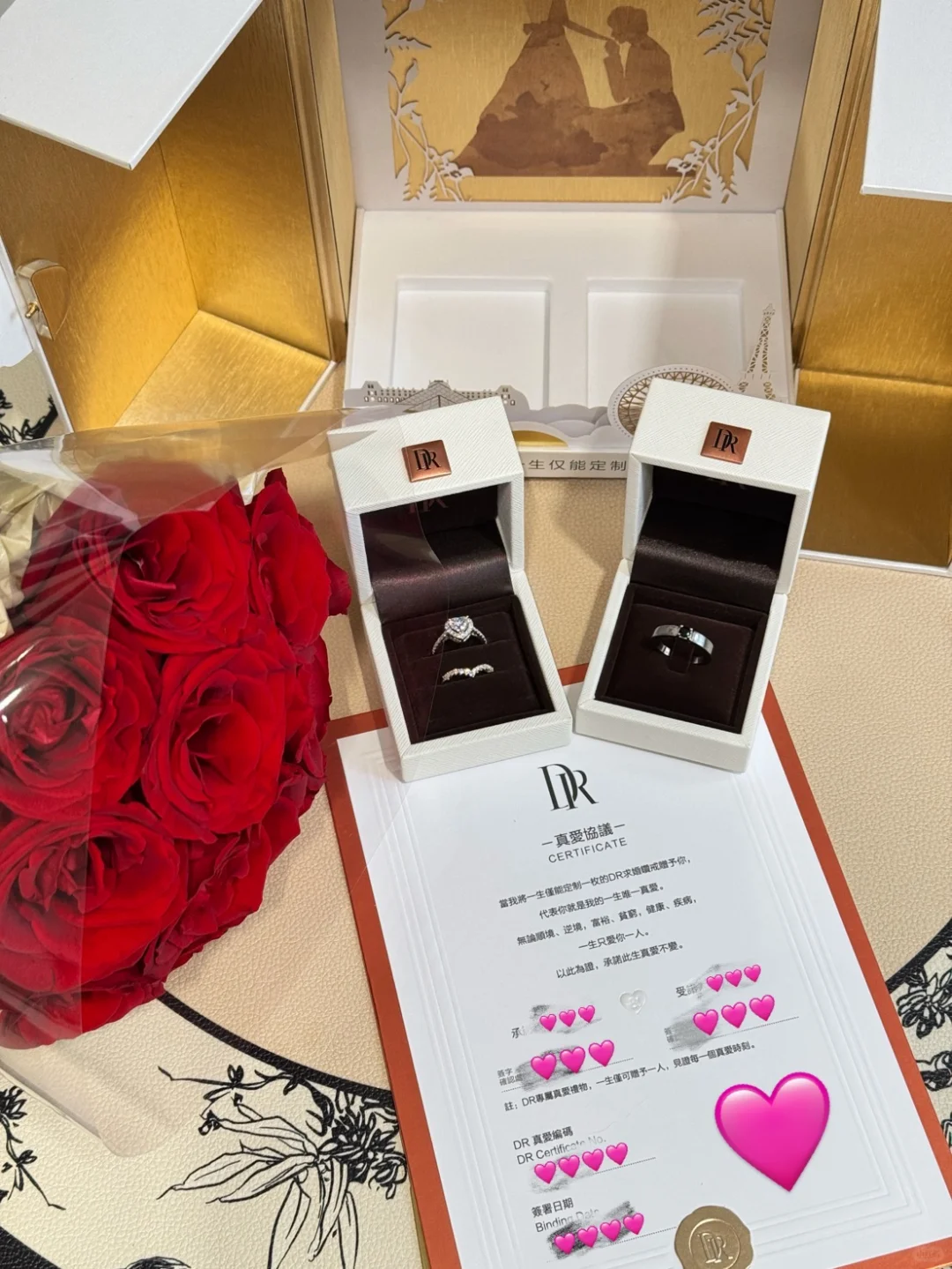 生活由很多很多瞬间的心动组成 比如今年的纪念日, 我收到了DR HEART 心形钻戒! 原来爱你的人真的会为你变得细致又浪漫 知道我喜欢爱心,特意选了他们家的心形钻戒 钻石真的好闪啊,戴手上每天能看八百遍! 仔细看了下发现里里外外都是爱心形状诶~ 和V型钻戒叠戴在一起感觉自己好像公主555 这份纪念日礼物不仅是物质上的惊喜, 还是生活中的事事有回应 更是“用一生爱一人”的勇气 他给了我唯一的DR名额 让我感受到了这独一份的偏爱和被珍视的幸福~ 结婚太美好了,我爱这普通而又充满幸福的一天!!