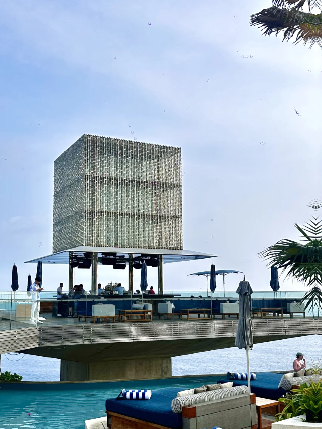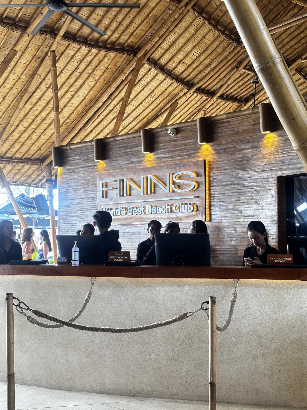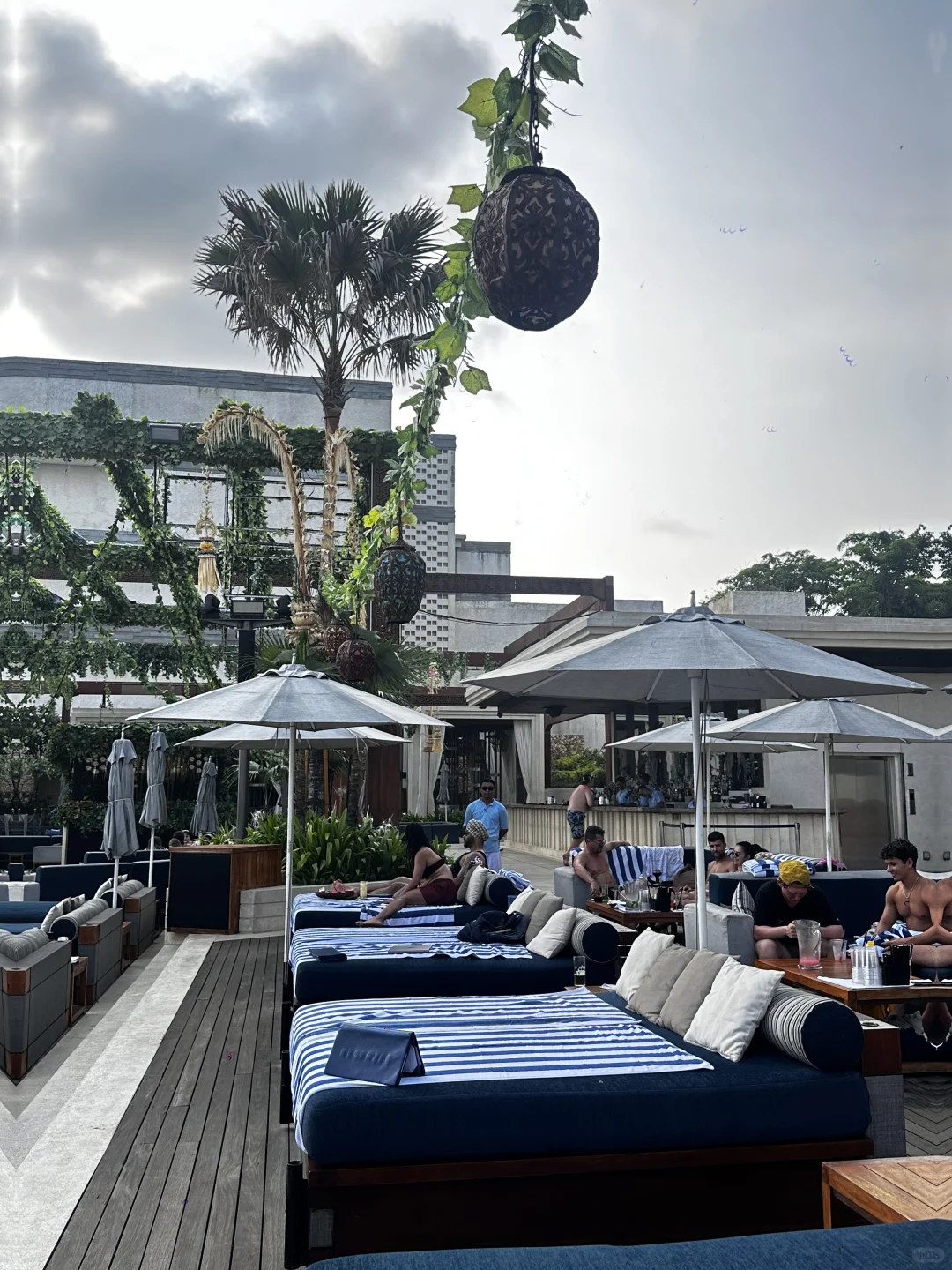 ☑️Finns 说是亚洲第一的beach club,当天下午4点多到的,可以直接walk in,一走进去人已经超级多了,运气很好正好水上的卡座空了一个位子出来,别的好的全部都被订满了,去的基本都是白人,大概6点多日落🌄 可以拍到超美的景色