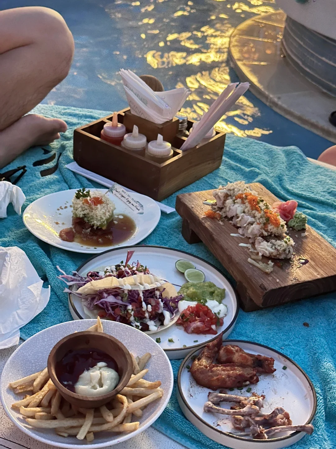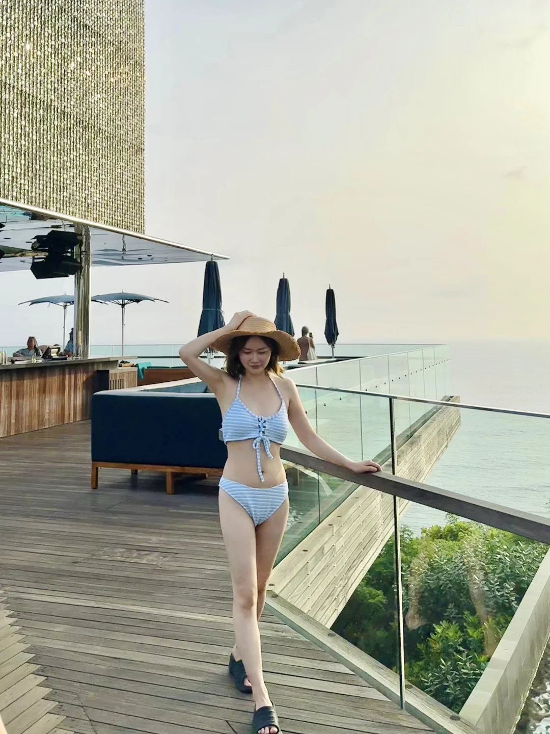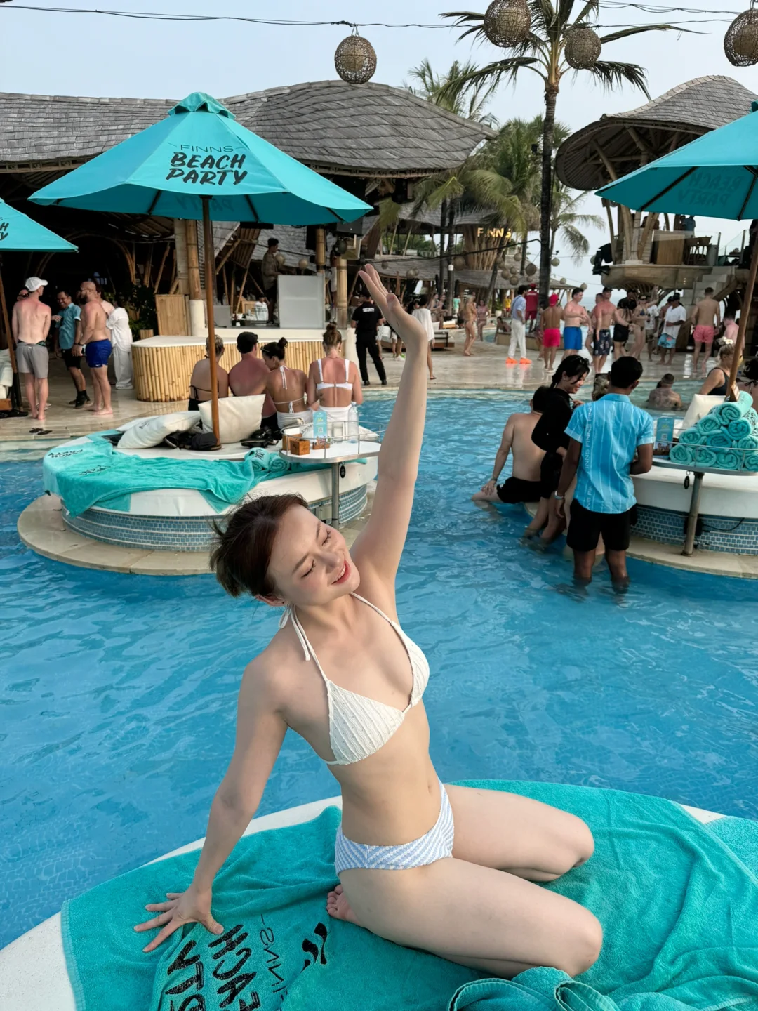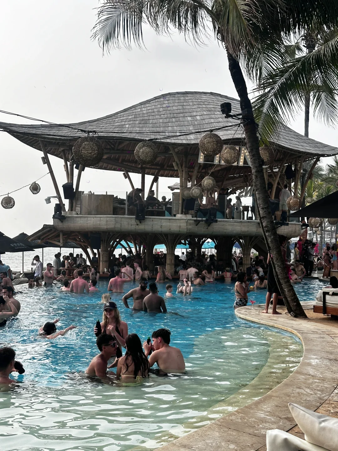 ☑️Finns 说是亚洲第一的beach club,当天下午4点多到的,可以直接walk in,一走进去人已经超级多了,运气很好正好水上的卡座空了一个位子出来,别的好的全部都被订满了,去的基本都是白人,大概6点多日落🌄 可以拍到超美的景色