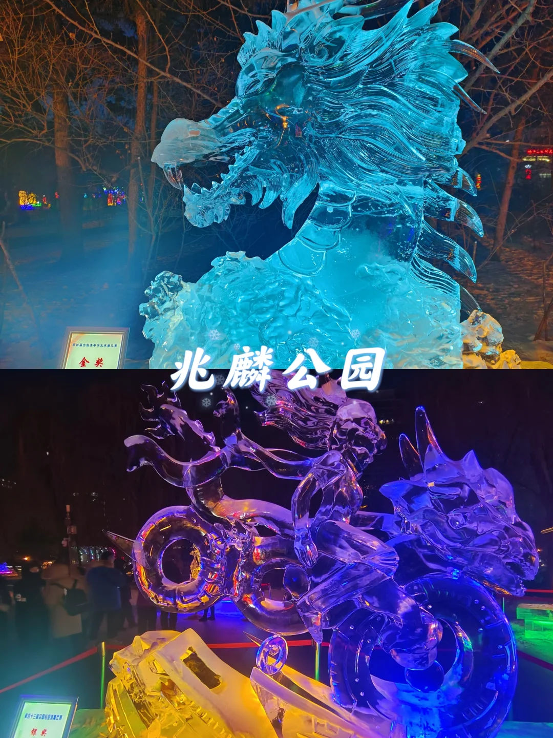 以李兆麟将军命名的园林风景区,有冰雕作品以及冰滑梯、冰迷宫等娱乐设施