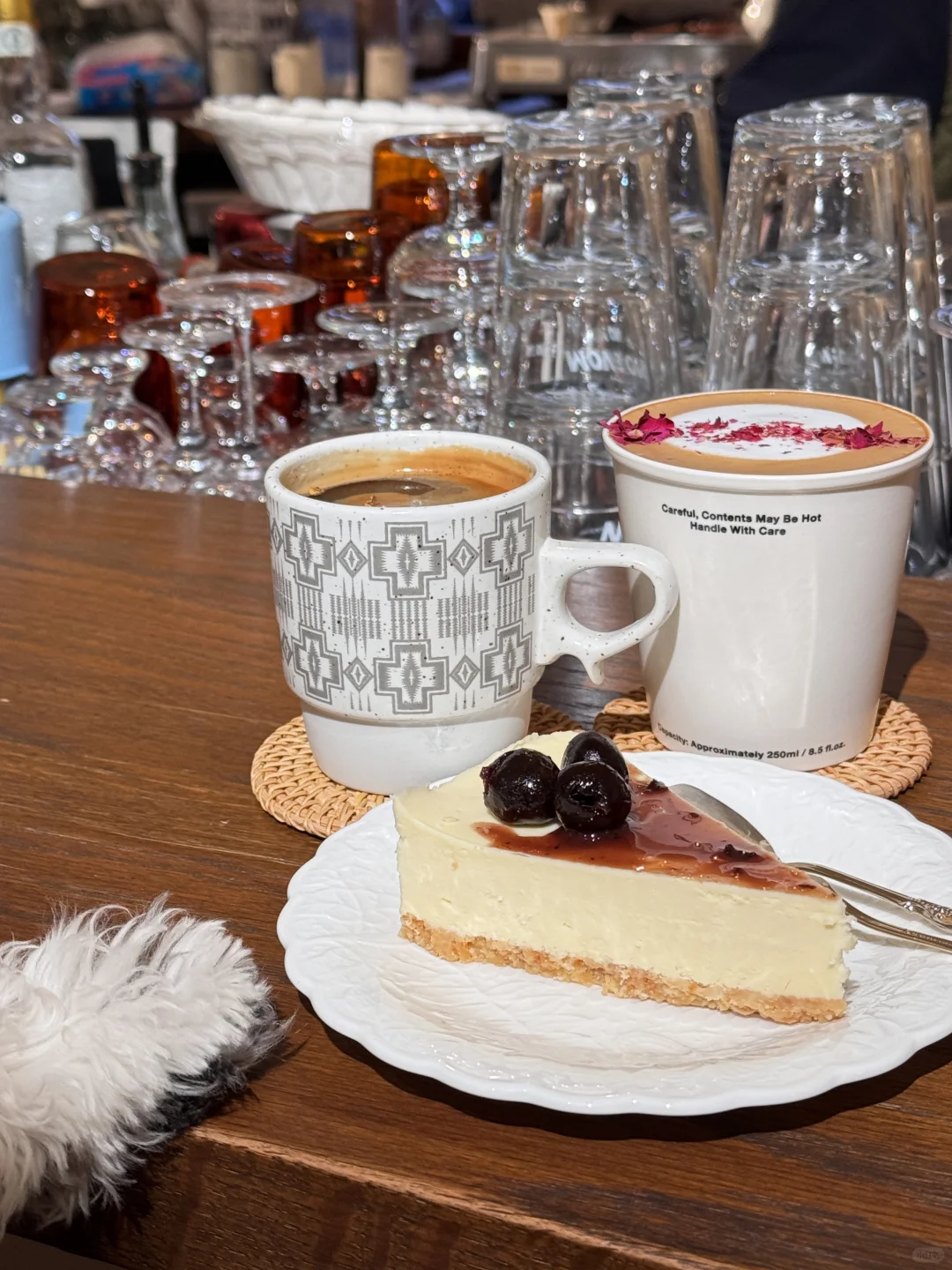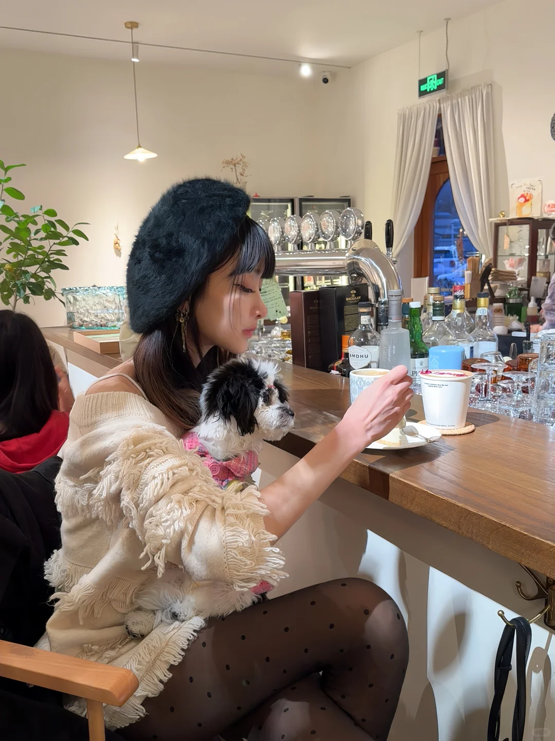 天气冷了不能做室外, 才发现其实很多餐厅都不是宠物友好 难得碰到一家店的小姐姐人很nice 让我们在大冷天坐进来 而且咖啡超级好喝☕️