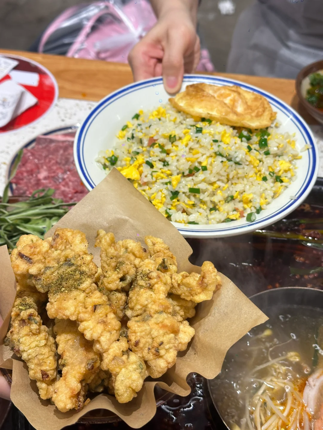 【 乐至火锅馆 】来重庆肯定得吃麻辣火锅呀!地道重庆朋友带我们来打卡了这家火锅,生意真的不要太好,不是周末都超级多的人排队 他们家火锅真的越煮越想,因为🈶不能吃辣的朋友,所以点了一个微微辣,吃到最后我都不行了,不愧是重庆,麻辣城,真的麻呀! ☑️很推荐小吃蛋糍粑(图9️⃣)蛋液包裹着软糯的糍粑,然后撒上红糖,好吃😋 而且着急解辣 ☑️糯米鱿鱼🦑 / 现滑泥鳅片 / 藕夹小鲜肉,这三道之前从来没有吃过,主打一个新鲜 吃完之后真的感叹,为啥冬天的火锅总是这么让人着迷🥰暖身又美味