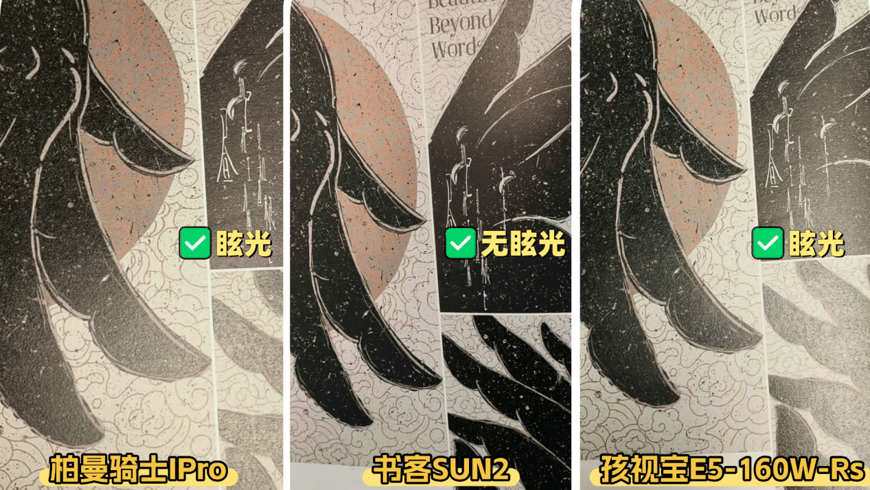 而柏曼、孩视宝虽然都是上下发光,但是实际都出现了眩光,其中孩视宝这款直发光的护眼灯眩光比较明显。