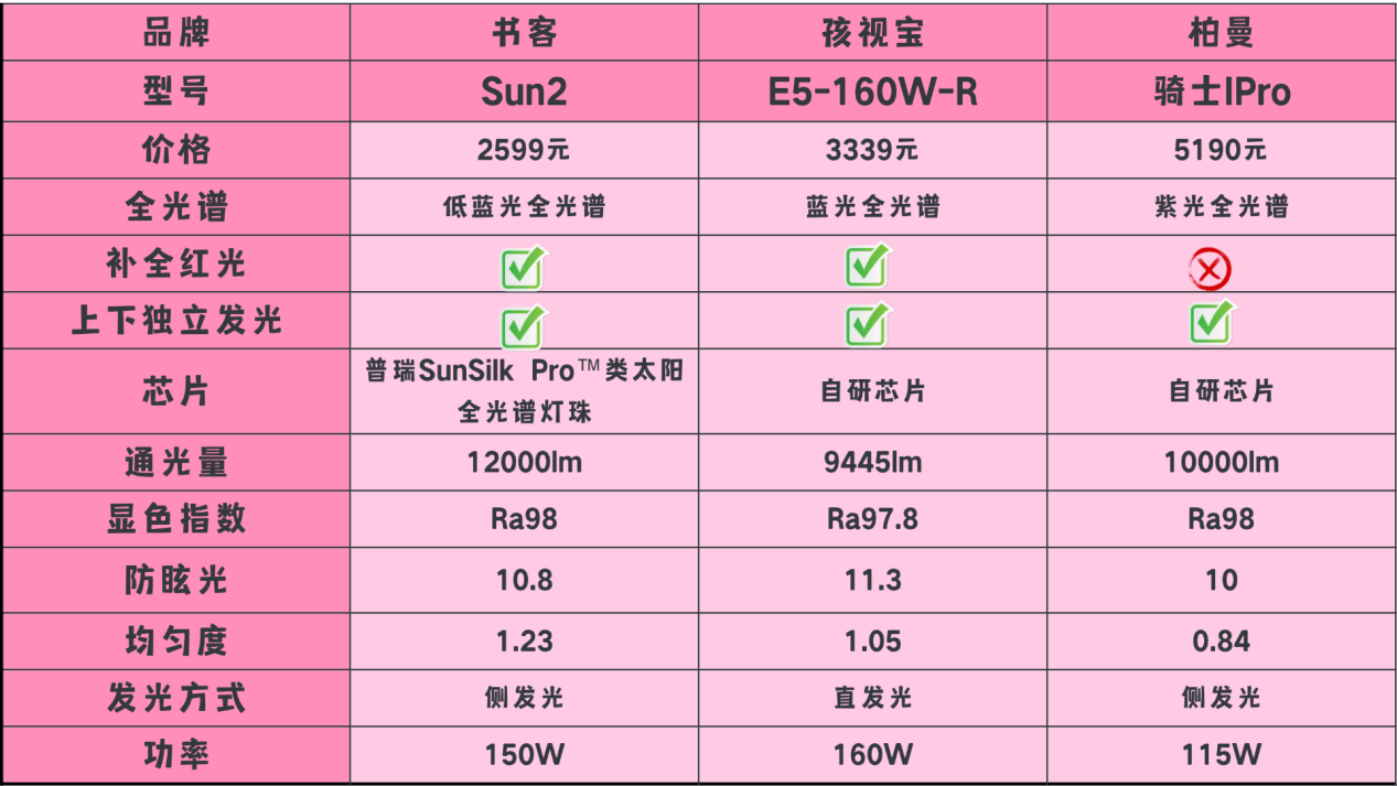 以下是三款护眼灯的核心参数: