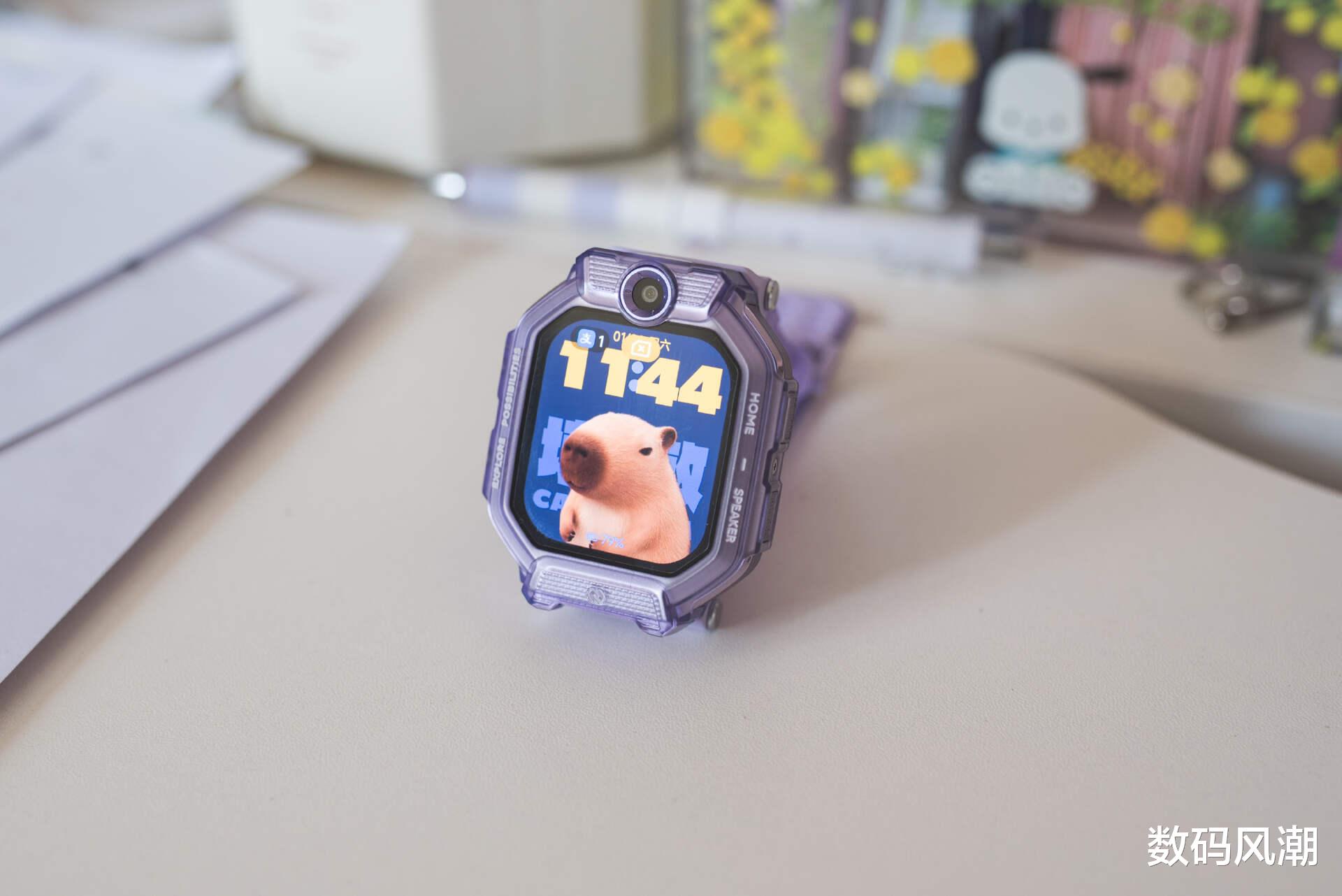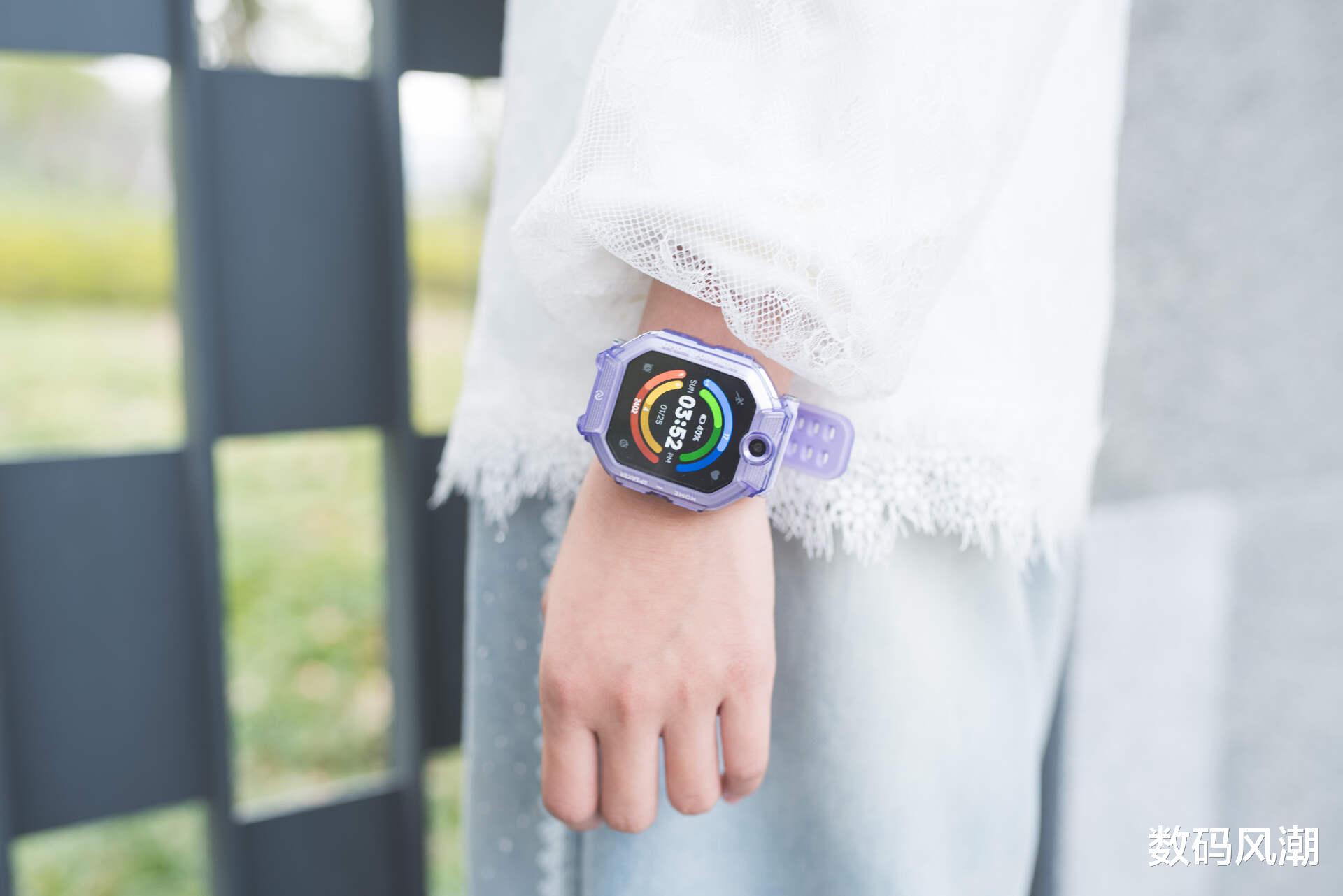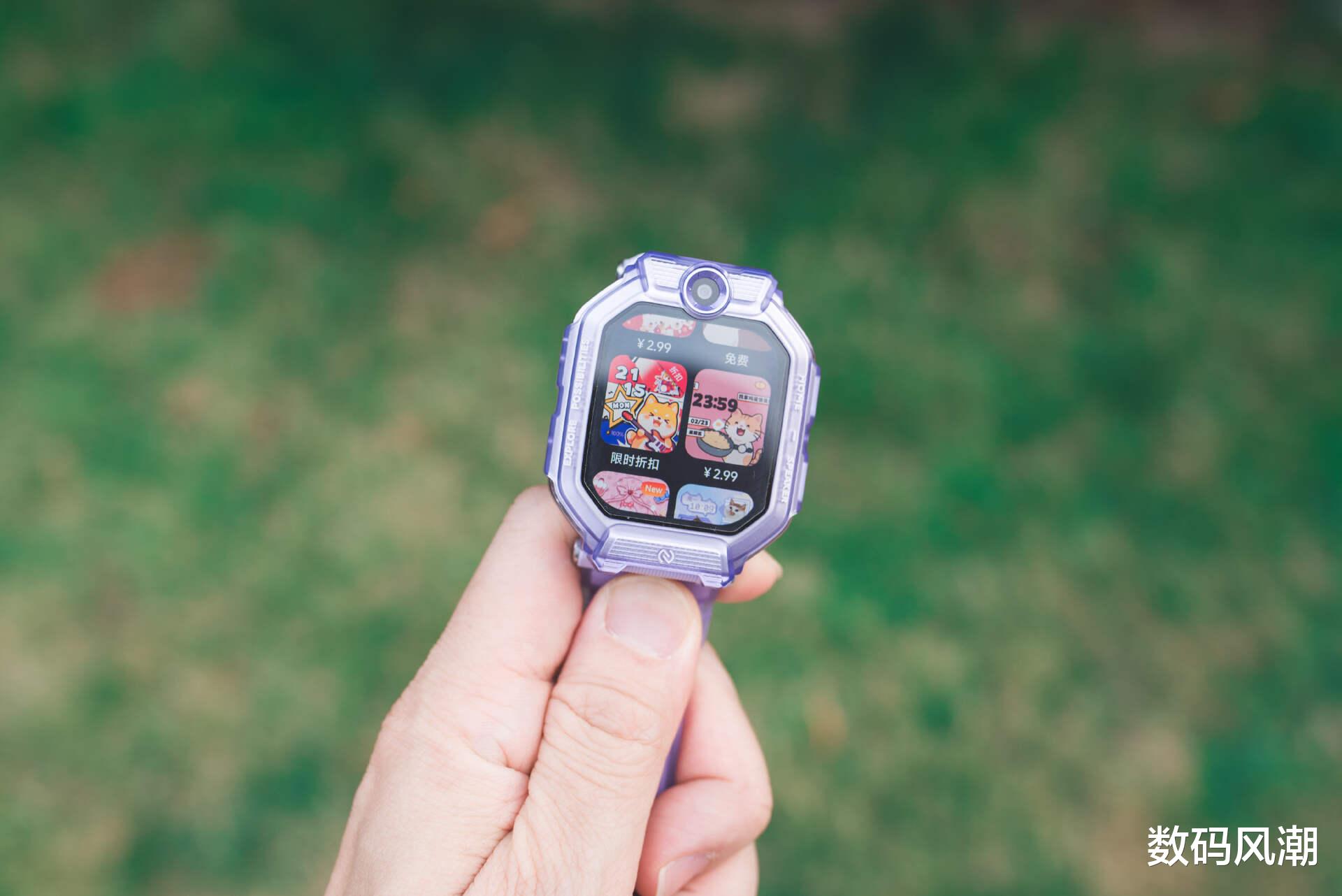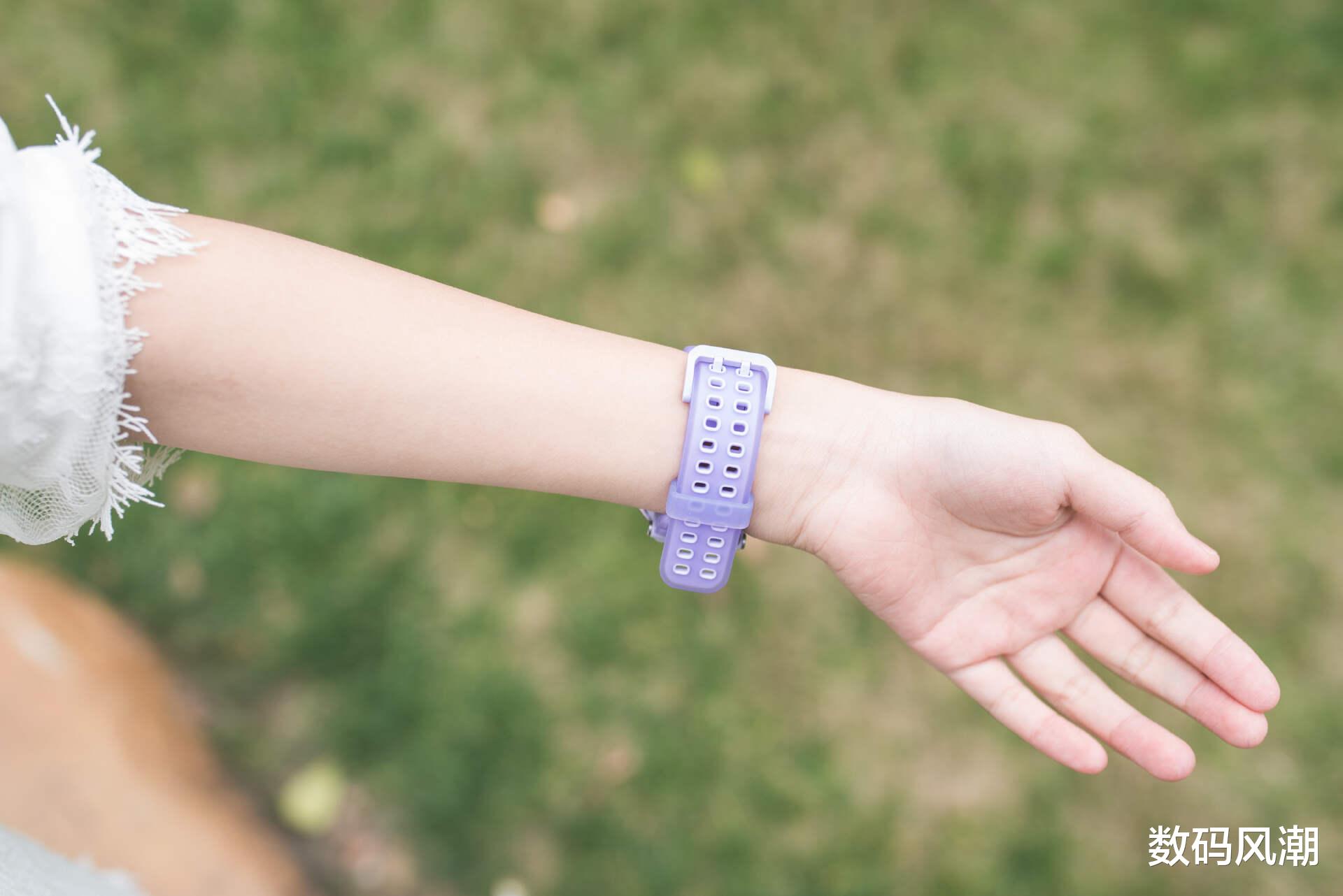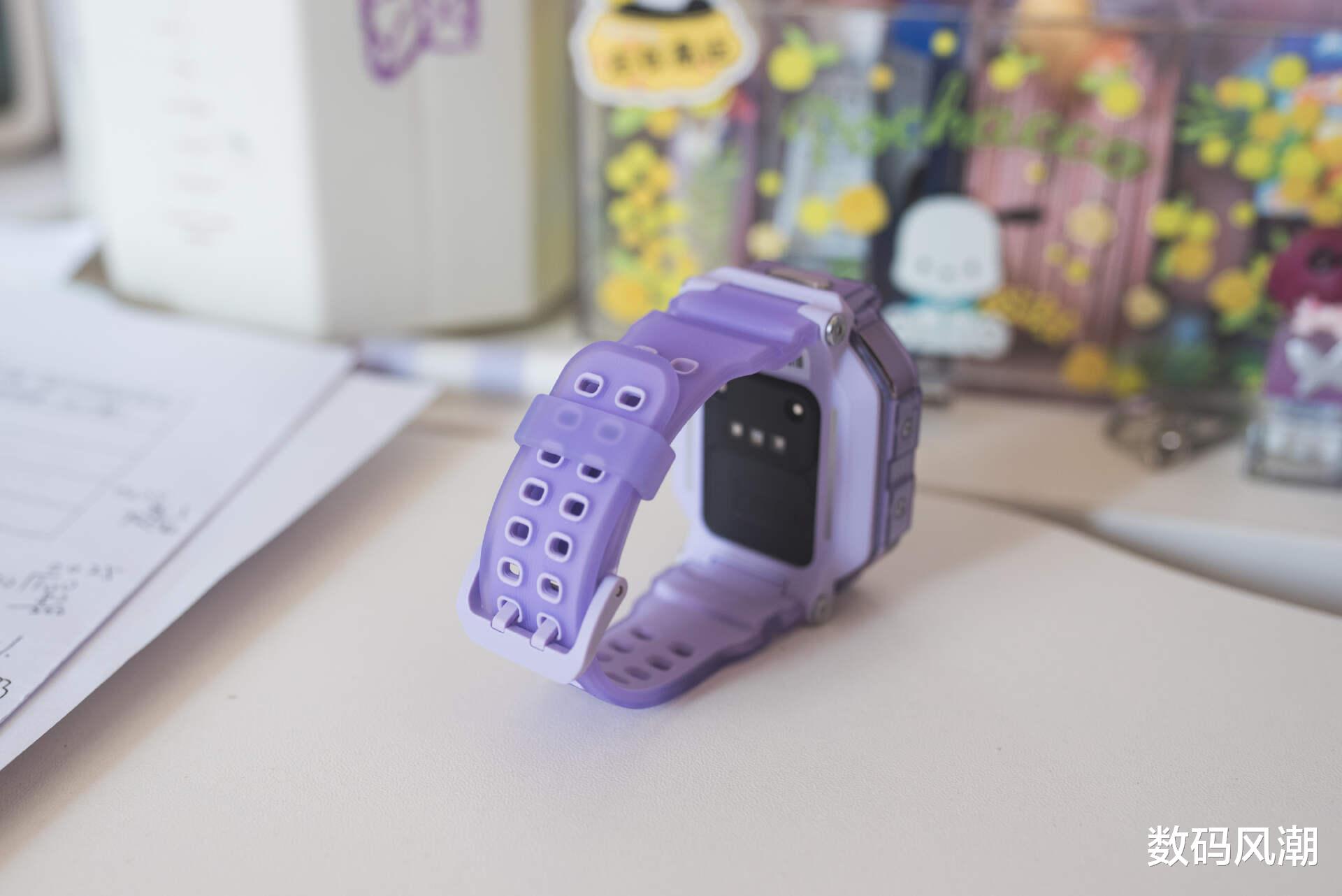 表带配色与表盘相辅相成,亲肤细腻的触感,整体舒适柔和,整体重量控制得当。双层透明结构+双孔位固定,兼顾美观与实用,孩子长时间佩戴也无负担。