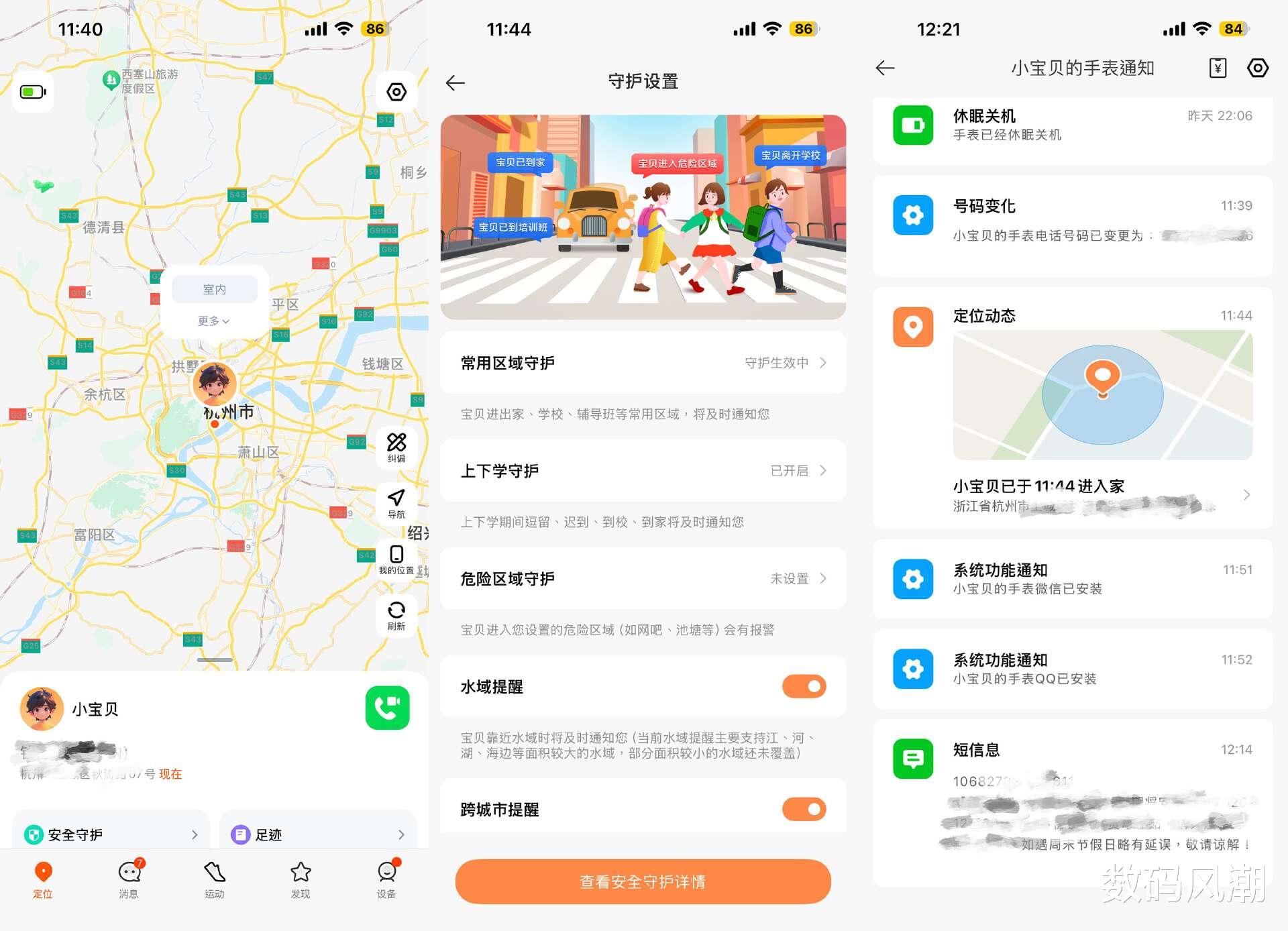 安全作为儿童手表的重中之重,算是此次产品的主打卖点强项。硬件方面已支持GPS、北斗、伽利略、 GLONASS及QZSS等5星14模定位能力,翻译成家长直观可理解的话,就是除了高精度定位,在室外秒级定位响应、轨迹丝滑不跳跃,室内具备更强3D楼层定位,再结合类似电子围栏功能,实现智能锁楼、精准到家(手表进入安全区域会自动提醒)、水域提醒(自定义标记危险区域)。
