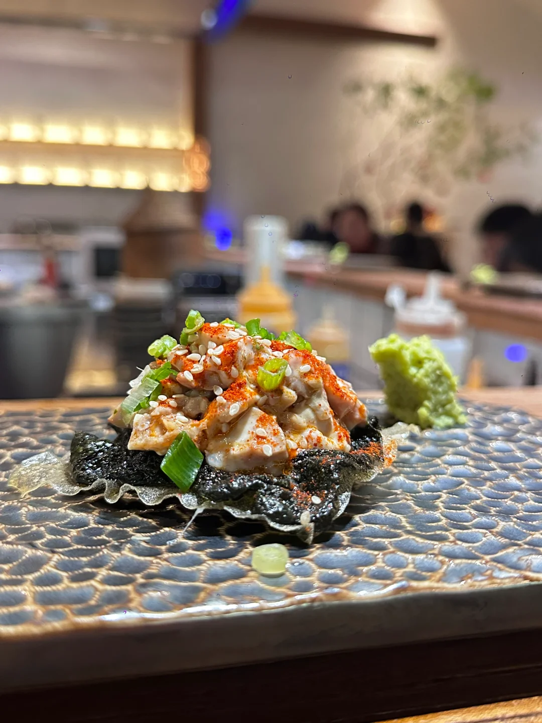 这家创意日料完全符合那些不是特别喜欢吃生冷食材的大家,餐厅提供免费🆓茶水🍵饮料🥤上菜前都会高温炙烤盘子🥏整体服务比较贴心